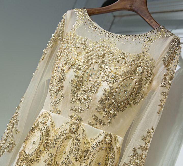 Affordable Long Sleeves Tulle Formal Cheap Long Prom Dresses, BGP008