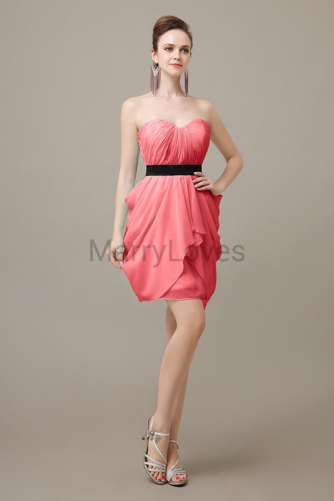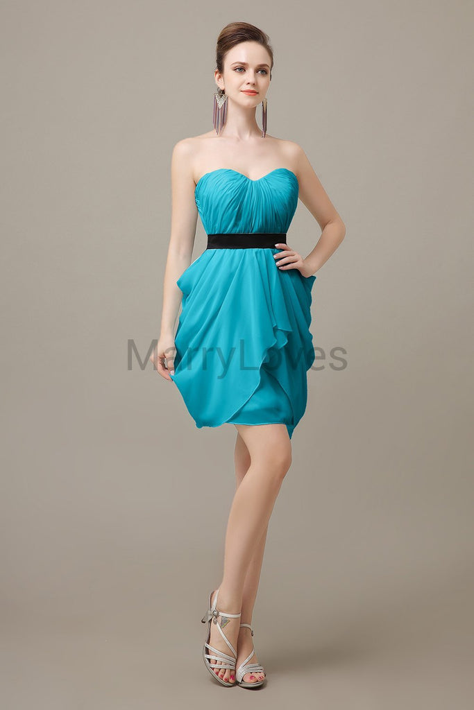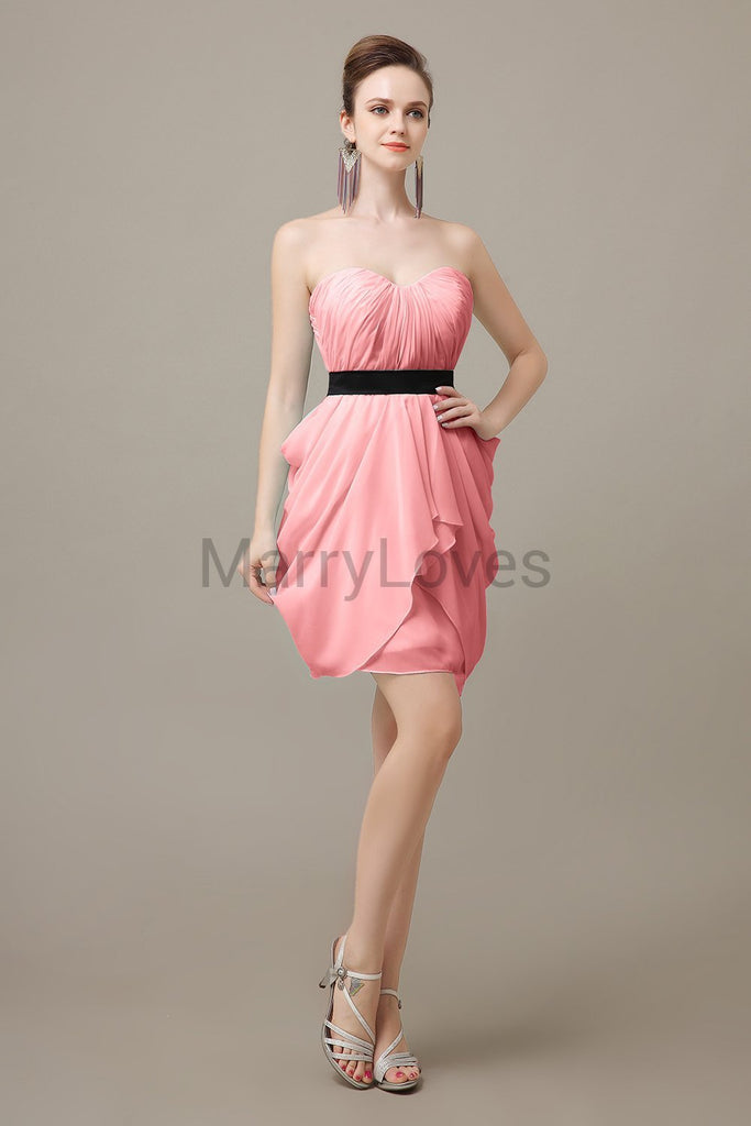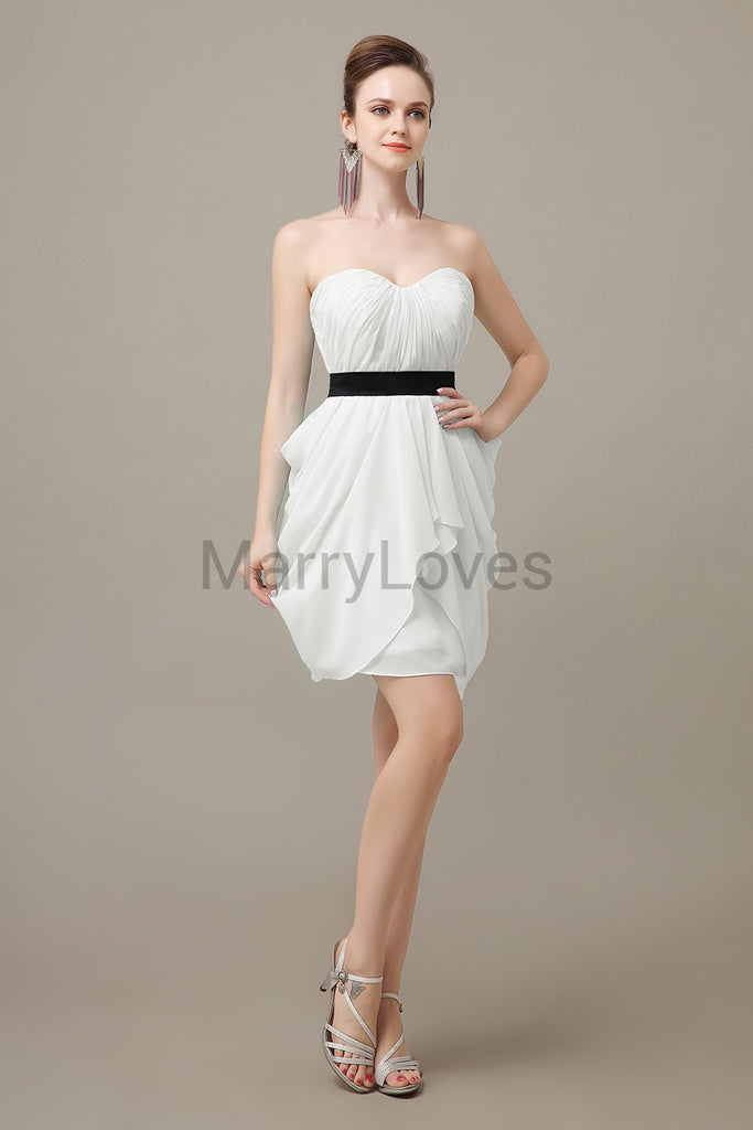 Sweetheart Neck Short Dress with Black Belt. Sweetheart Neck Short Dress with Black Belt.