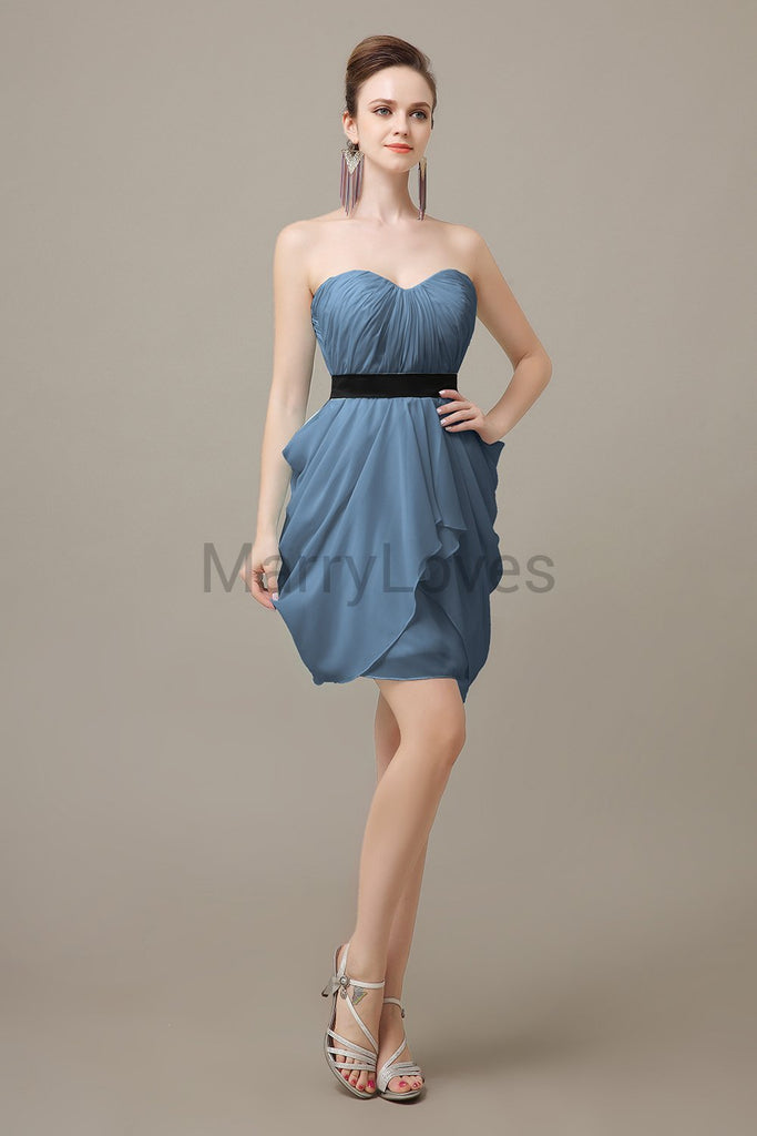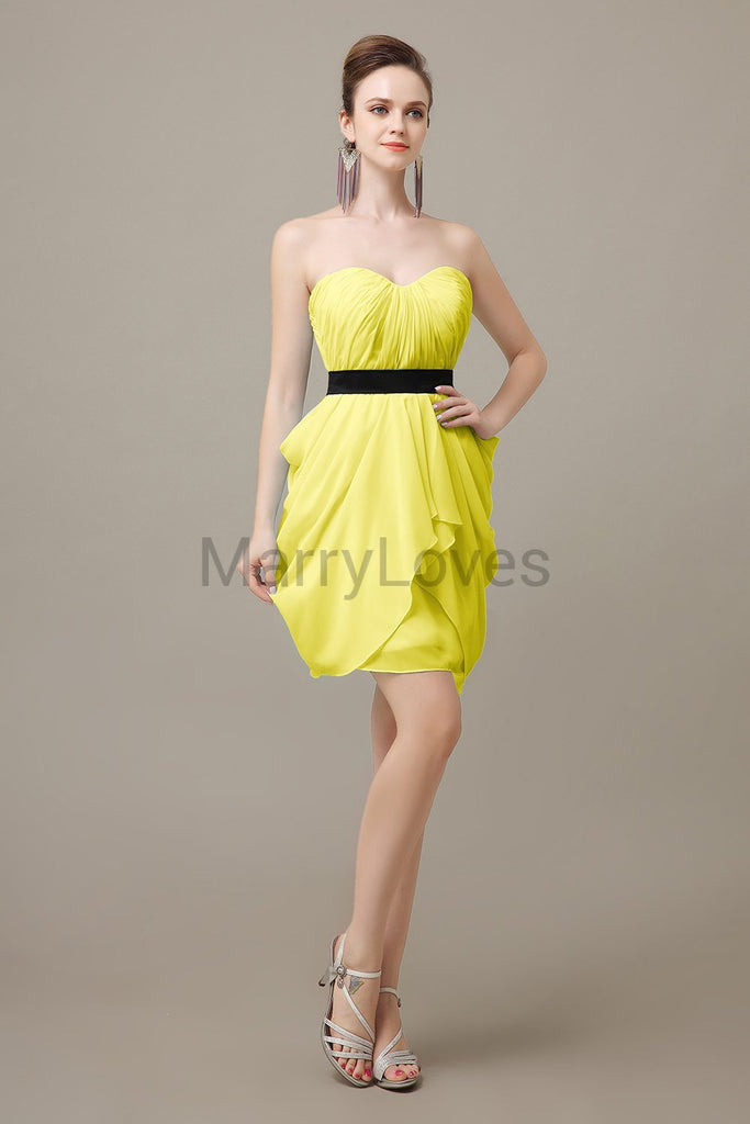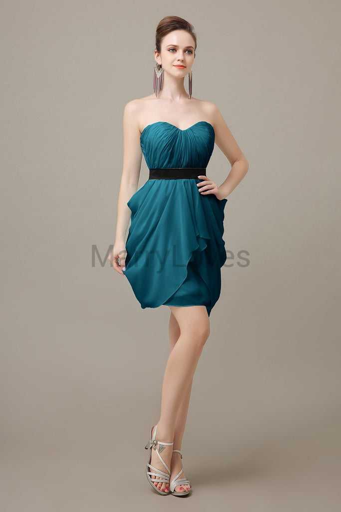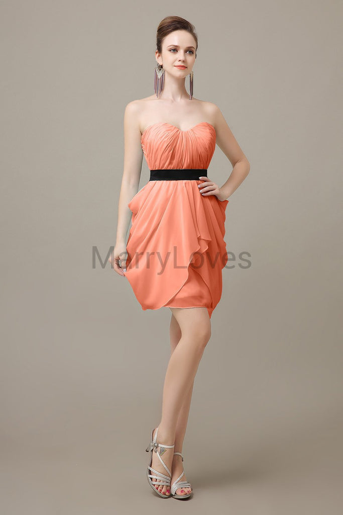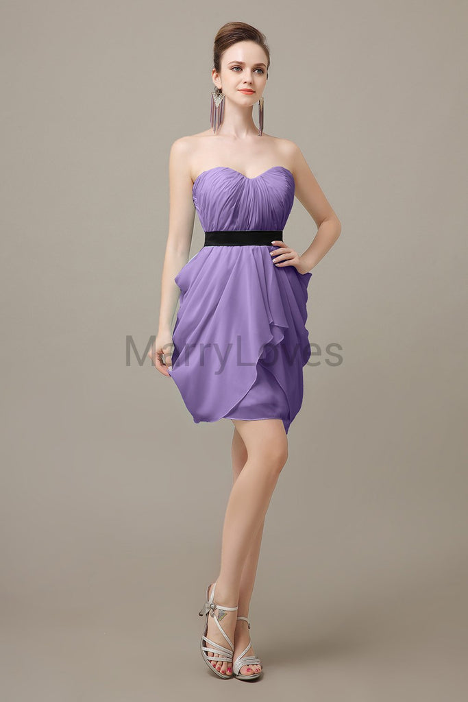 Sweetheart Neck Short Dress with Black Belt. Sweetheart Neck Short Dress with Black Belt.