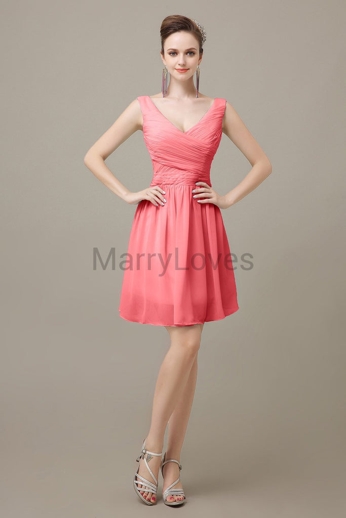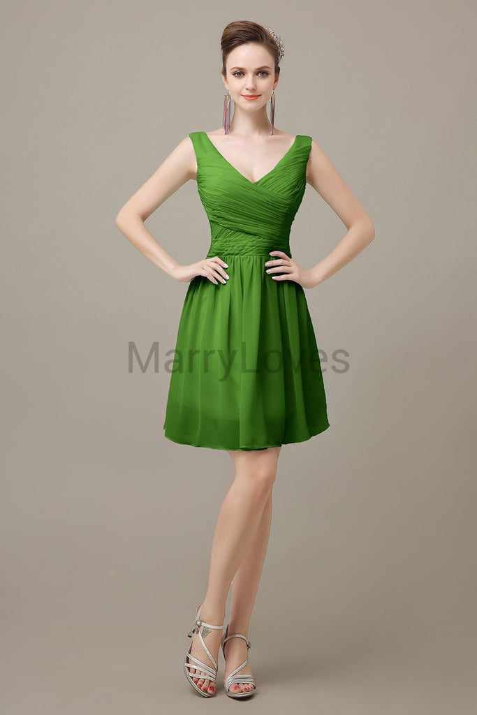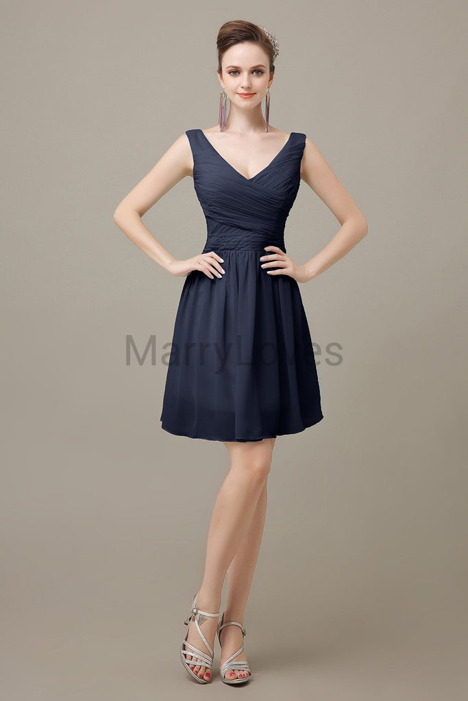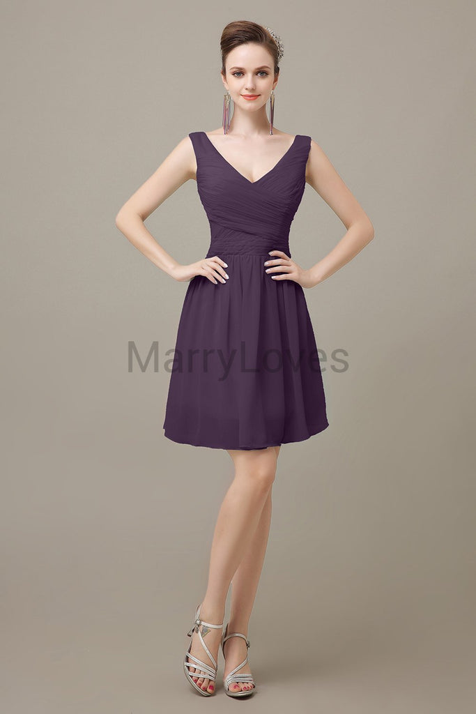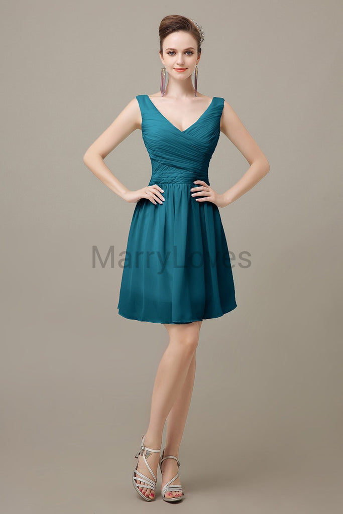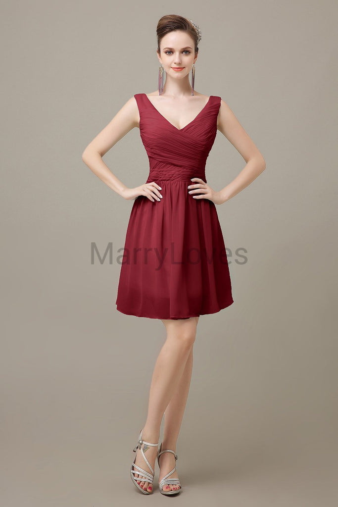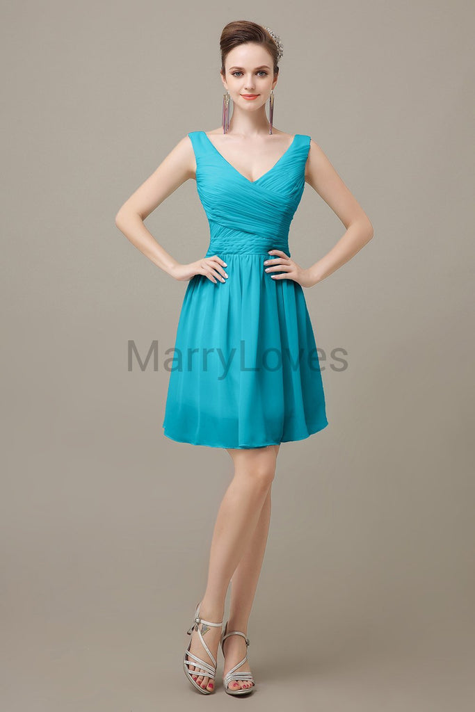 V-neck Chiffon Short Pleats Bridesmaid Dresses V-neck Chiffon Short Pleats Bridesmaid Dresses