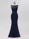 - Mermaid bateau dress features a back zip at back.