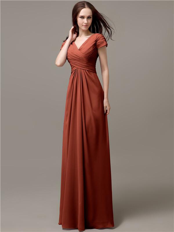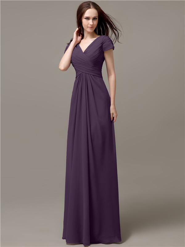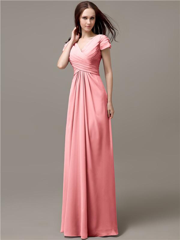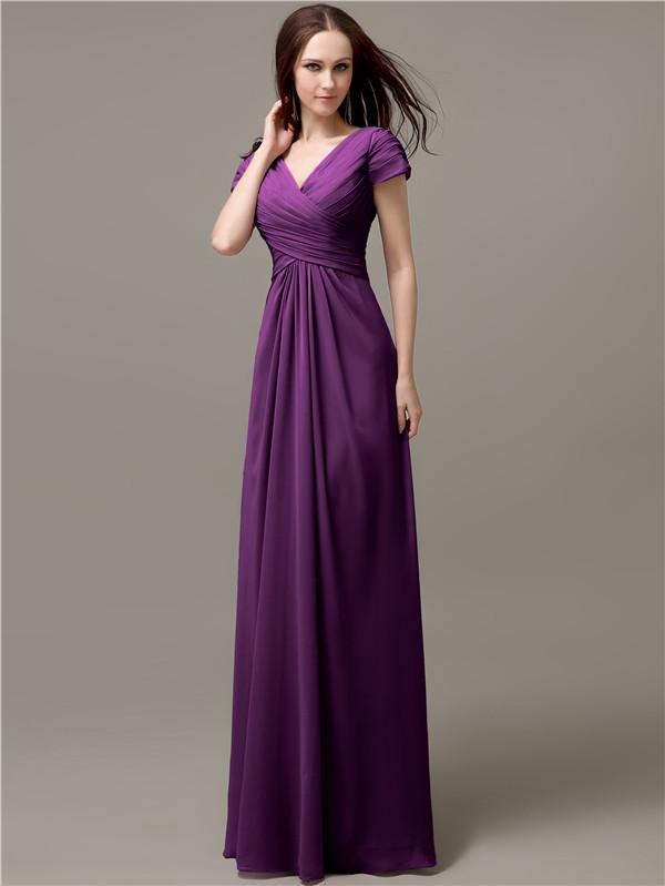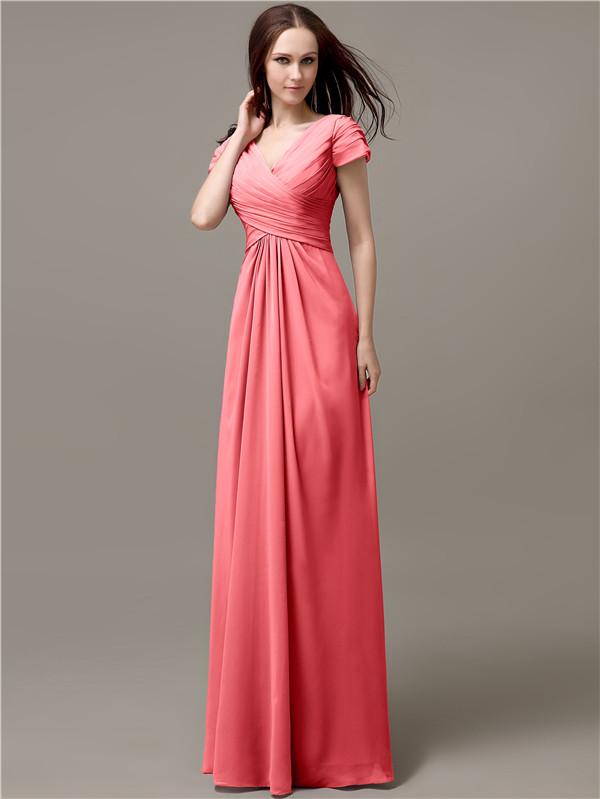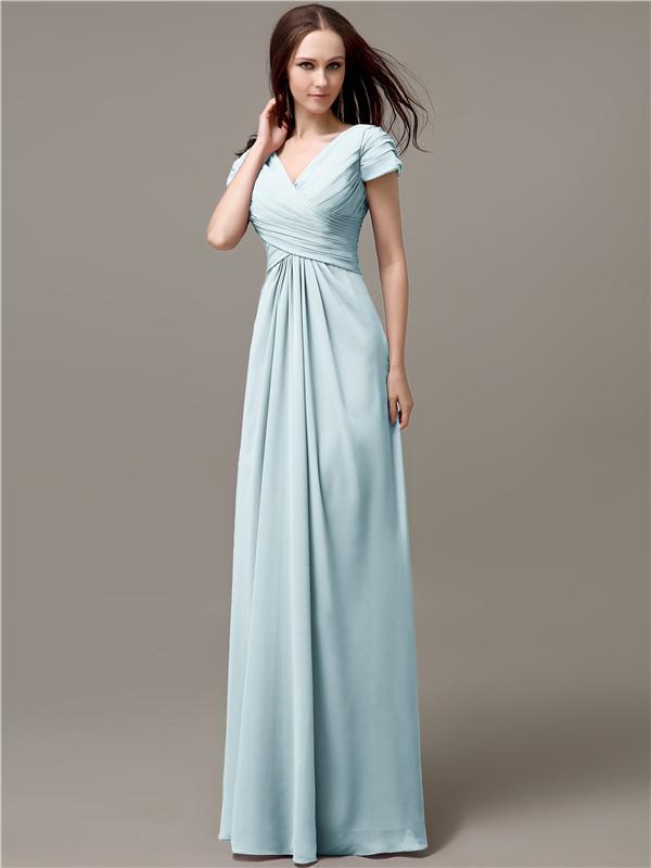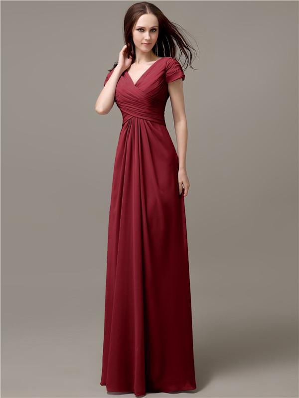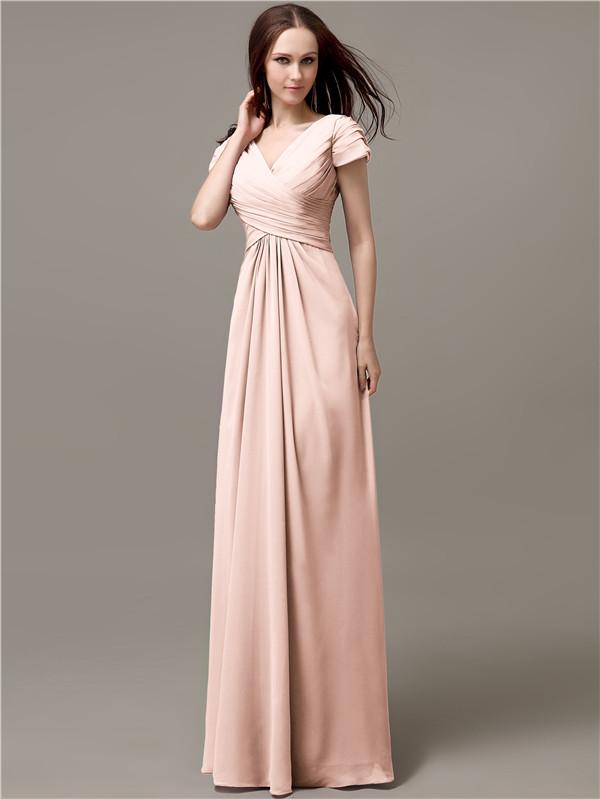 A-line V-neck Short Sleeves Pleats Bridesmaid Dresses A-line V-neck Short Sleeves Pleats Bridesmaid Dresses
