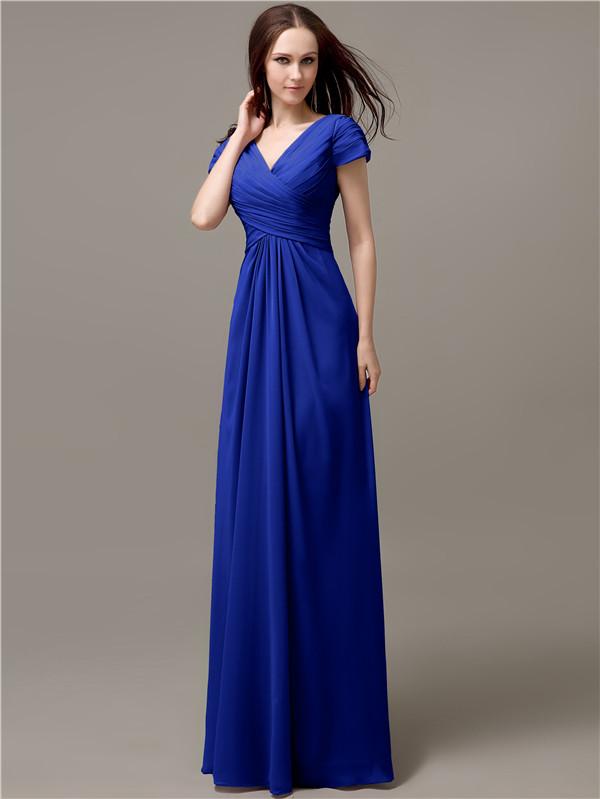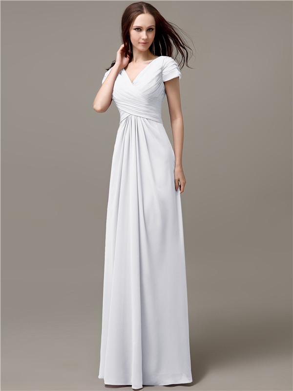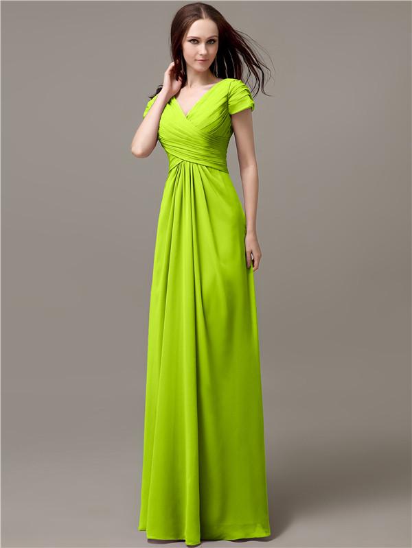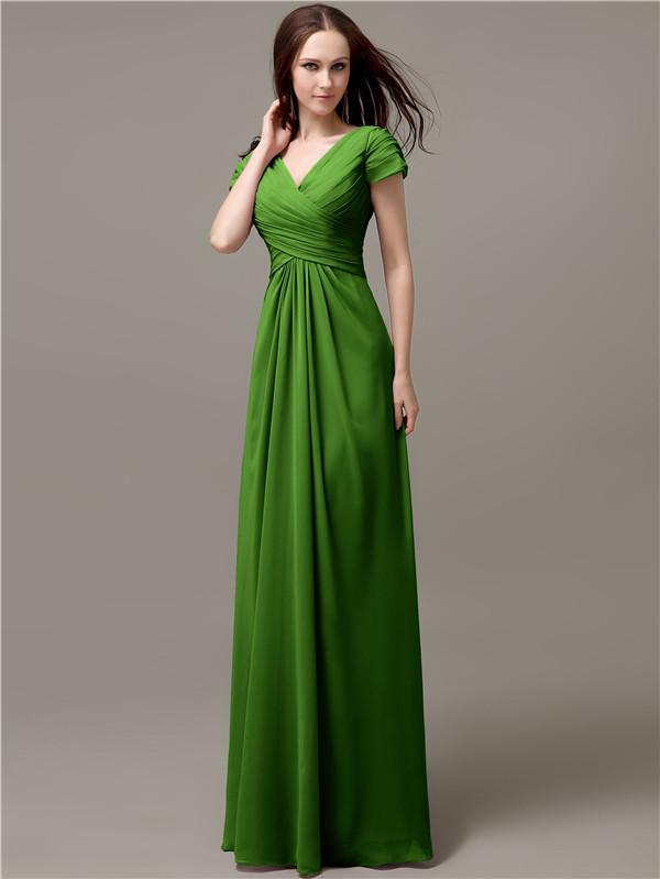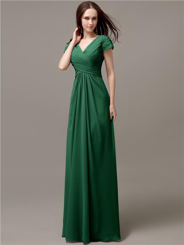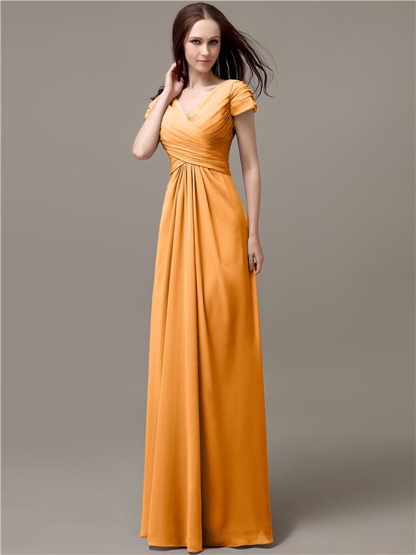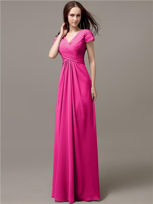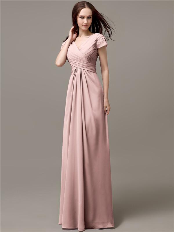 A-line V-neck Short Sleeves Pleats Bridesmaid Dresses A-line V-neck Short Sleeves Pleats Bridesmaid Dresses
