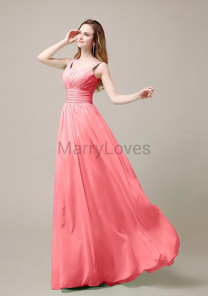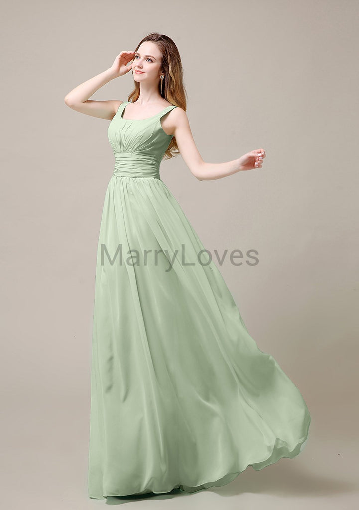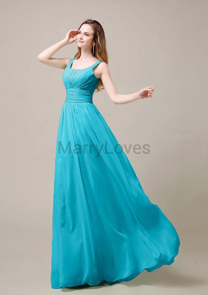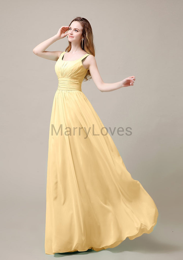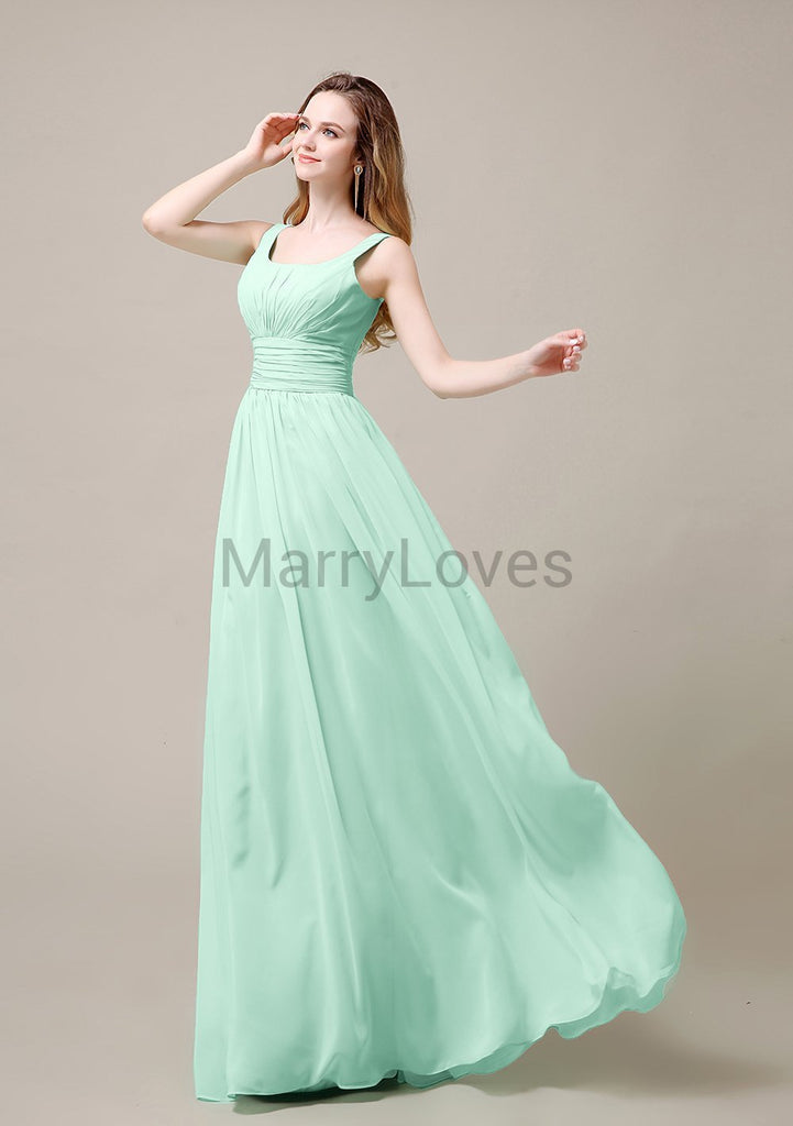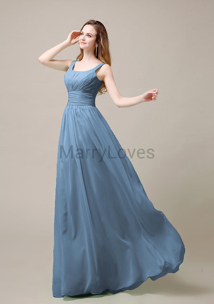 Square Neck Pleats Floor Length Bridesmaid Dresses Square Neck Pleats Floor Length Bridesmaid Dresses