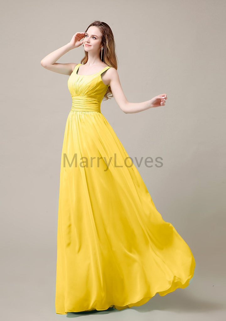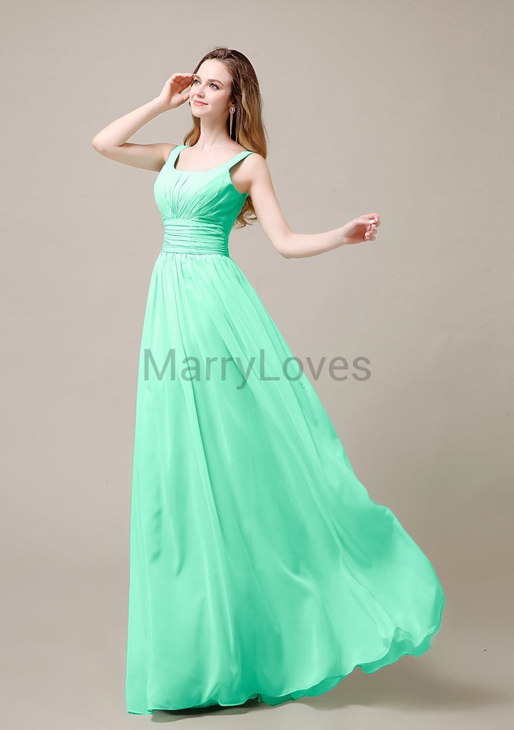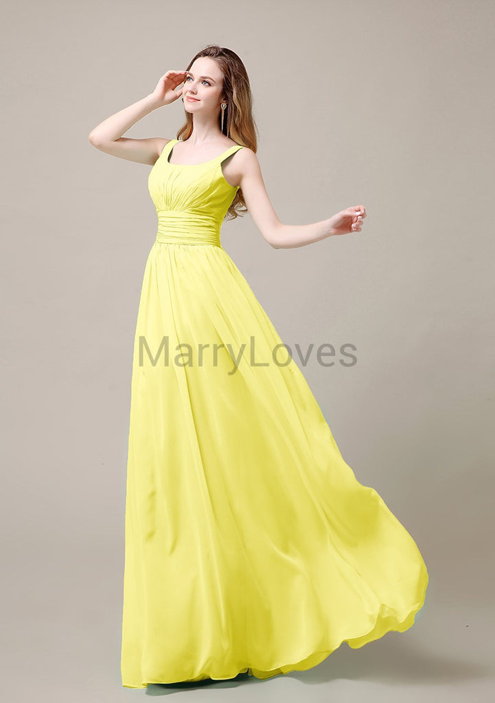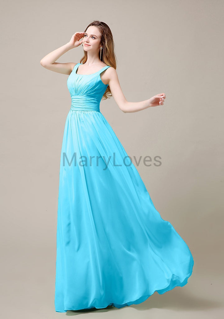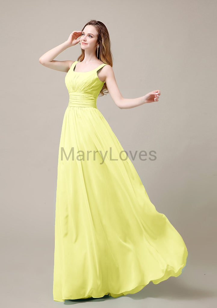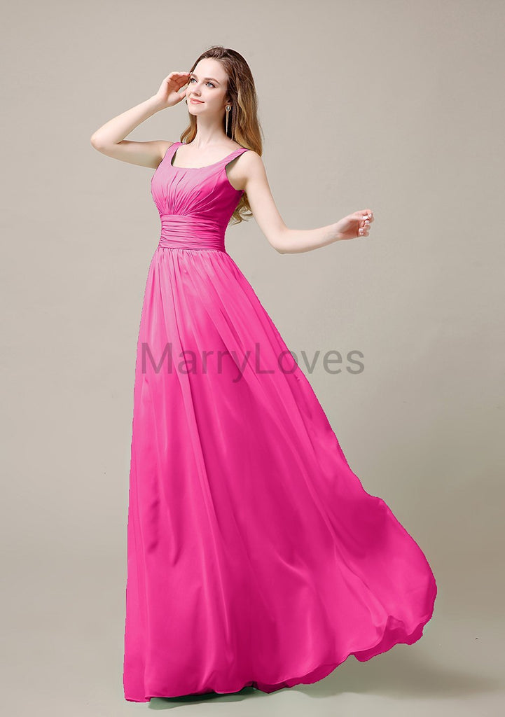 Square Neck Pleats Floor Length Bridesmaid Dresses Square Neck Pleats Floor Length Bridesmaid Dresses