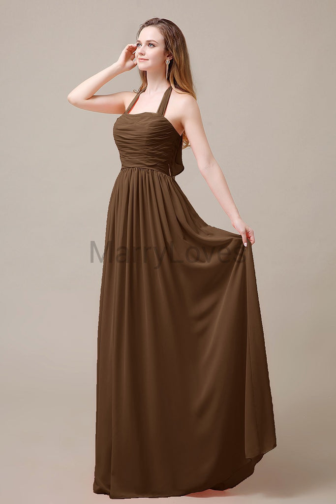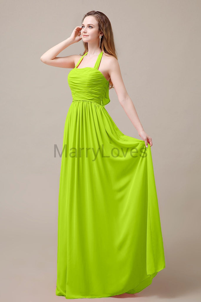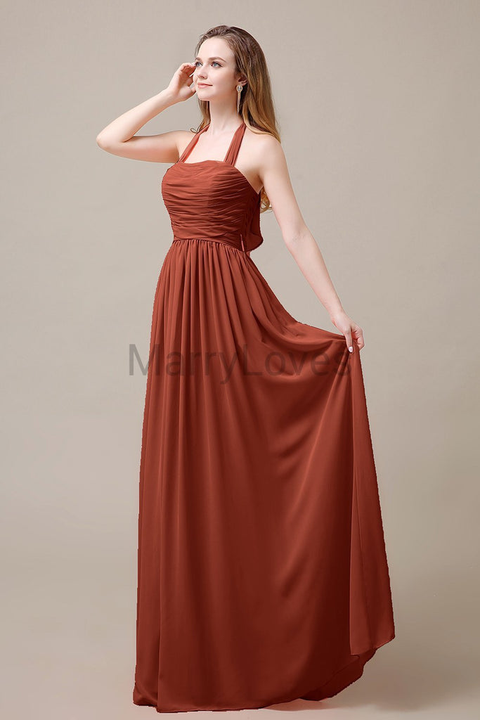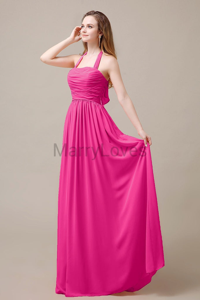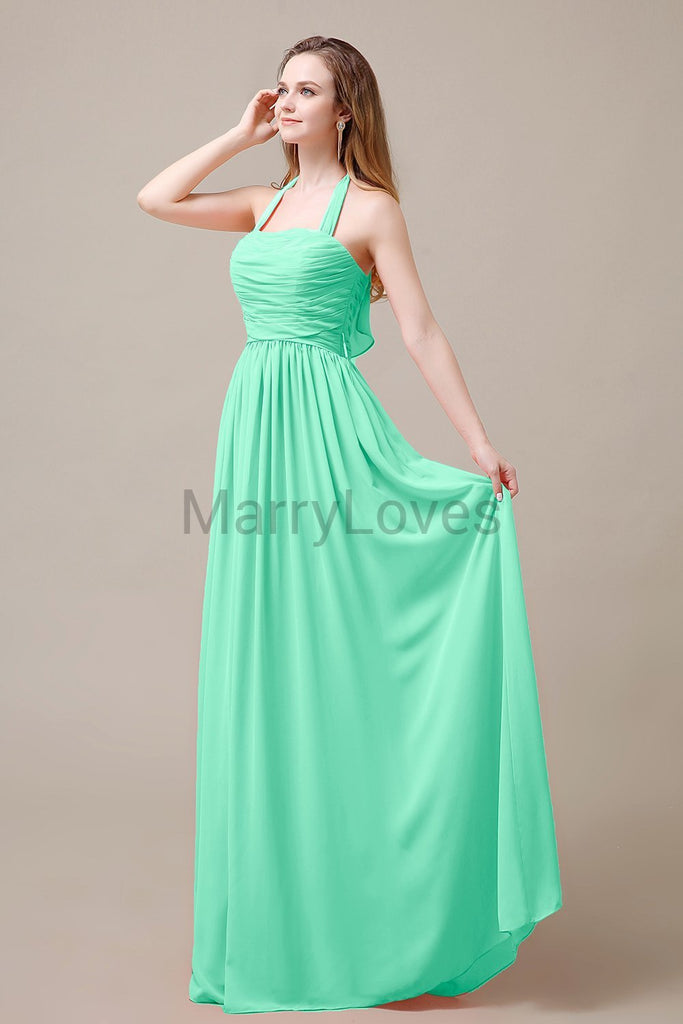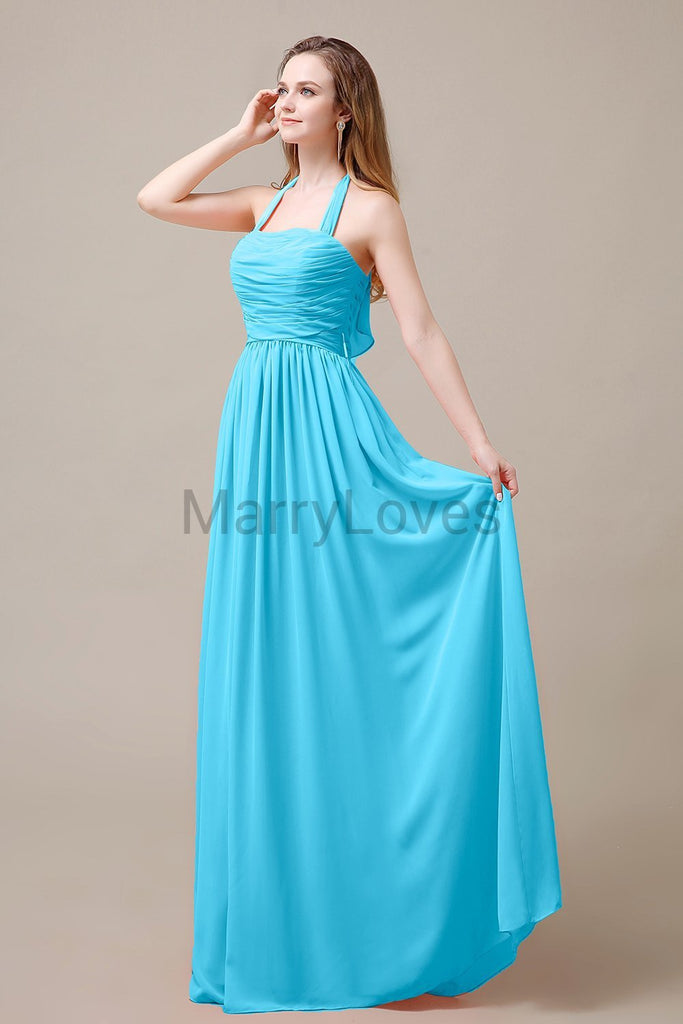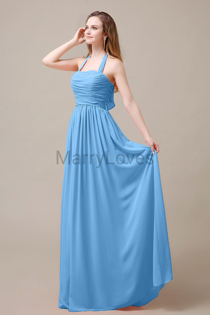 Halter Chiffon Birdesmaid Dresses with Bow Straps
