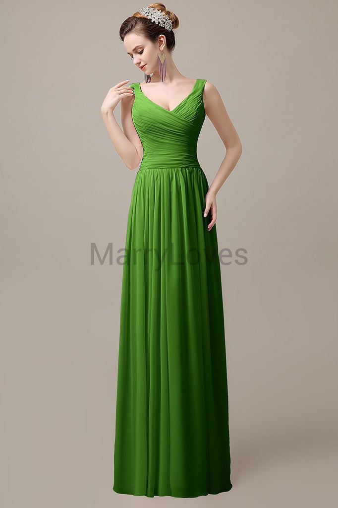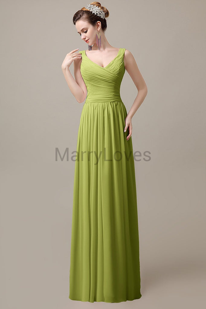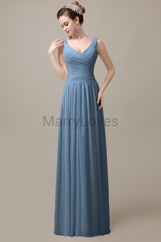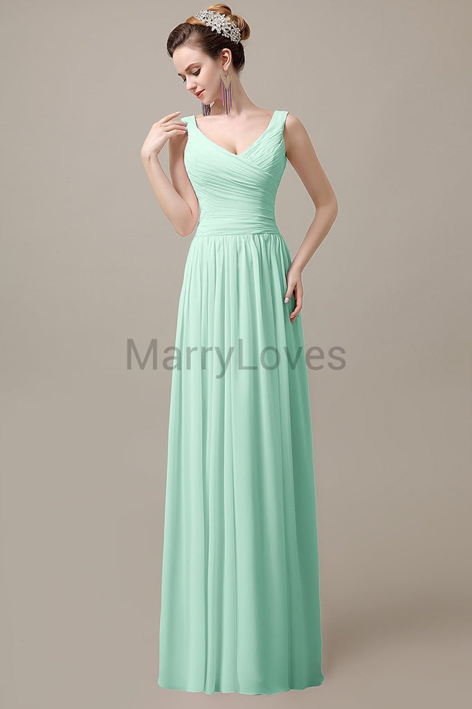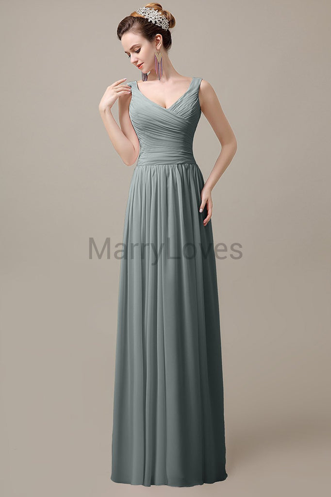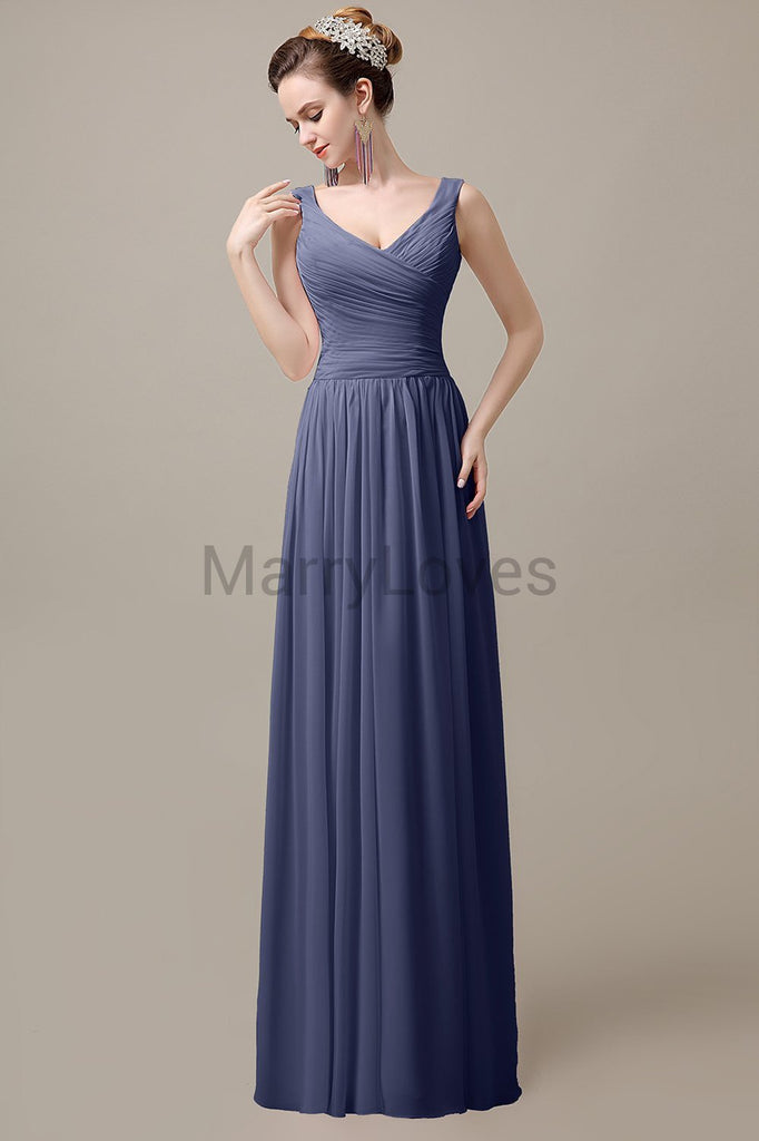 V-Neck Straps Pleats Bridesmaid Dresses V-Neck Straps Pleats Bridesmaid Dresses