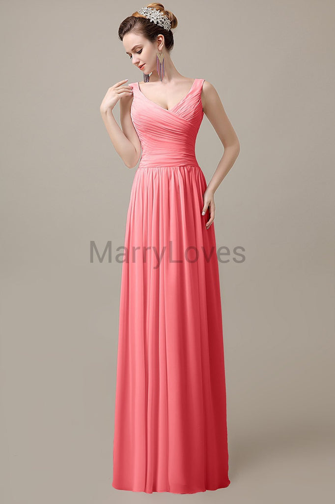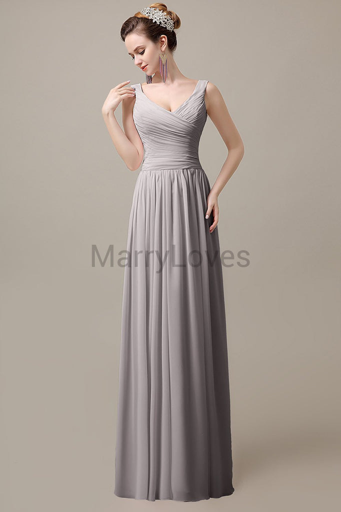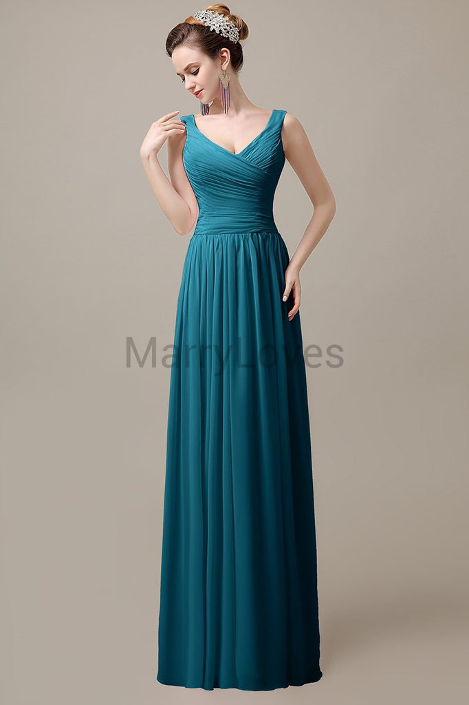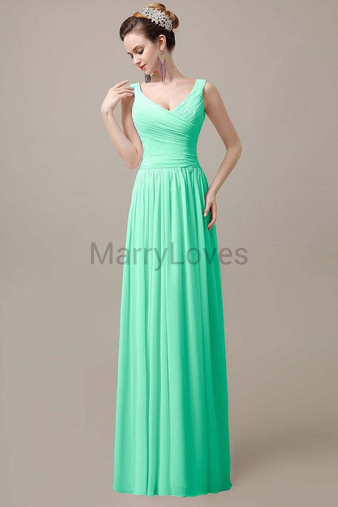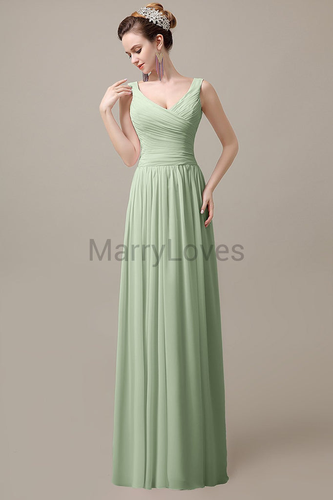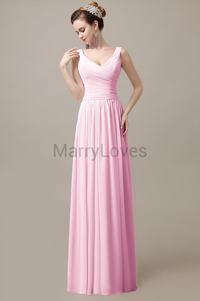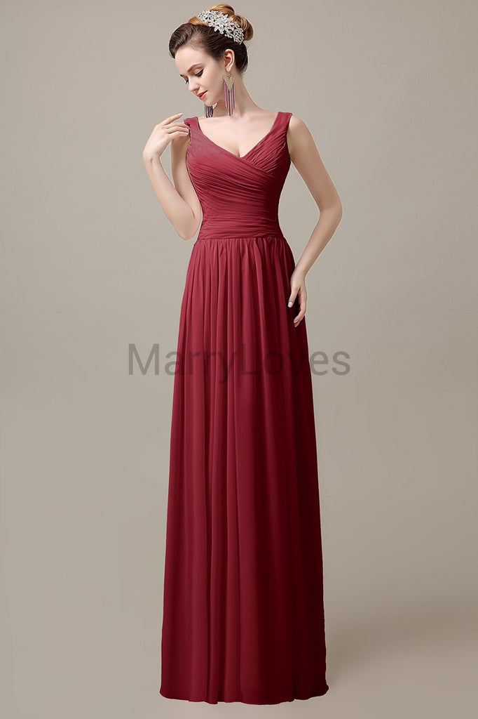 V-Neck Straps Pleats Bridesmaid Dresses V-Neck Straps Pleats Bridesmaid Dresses