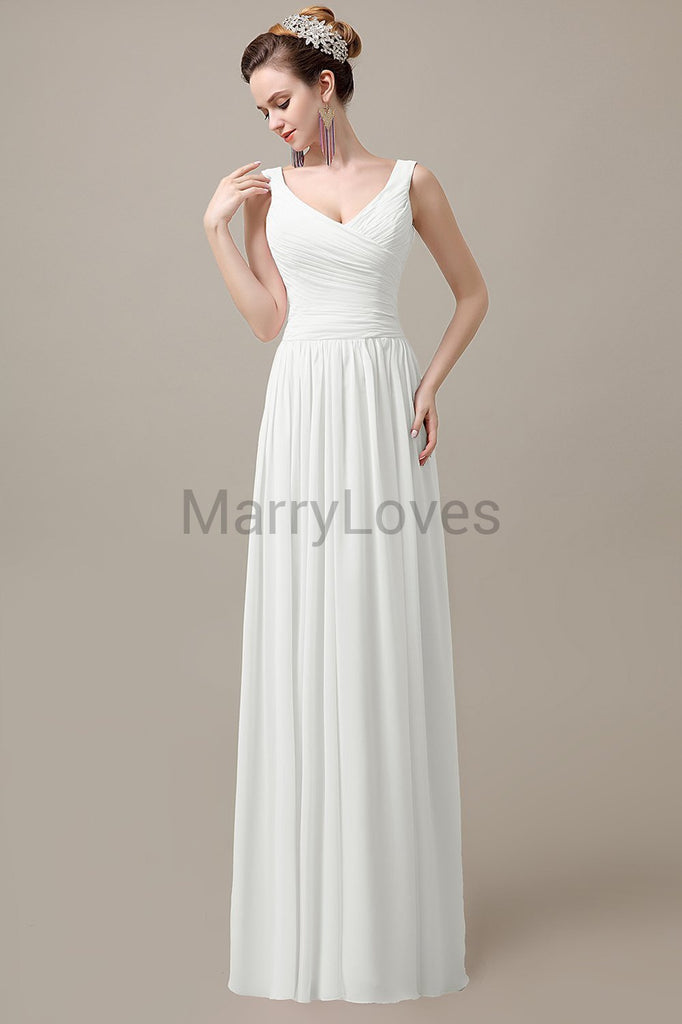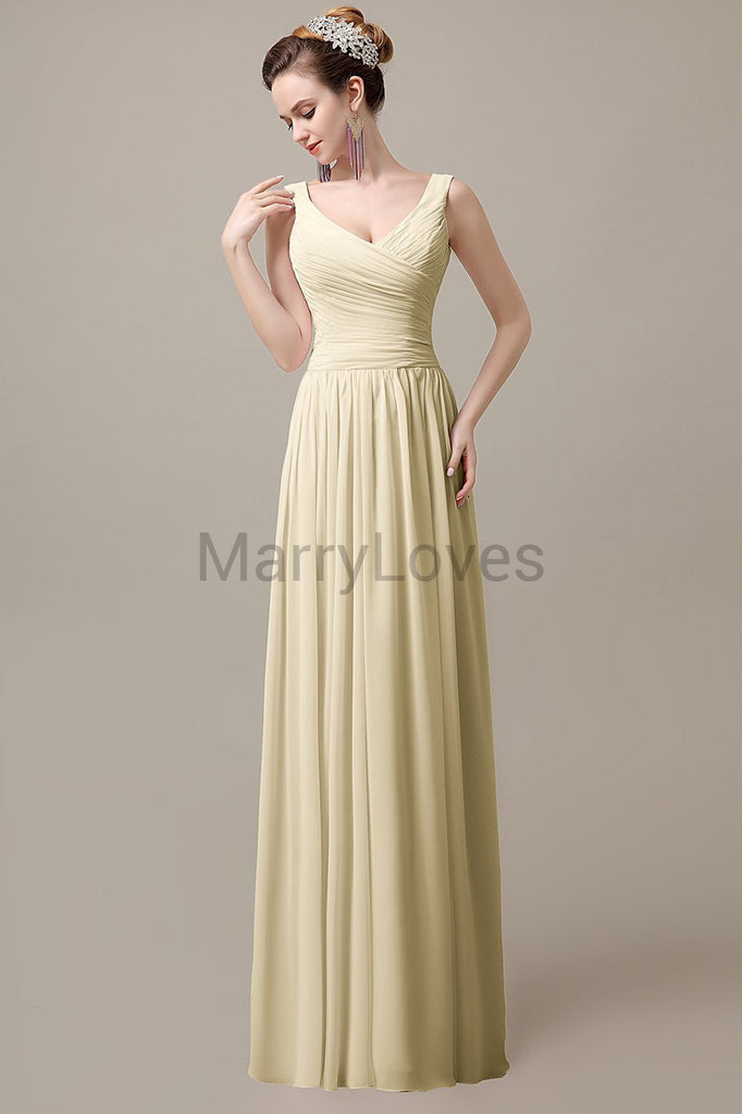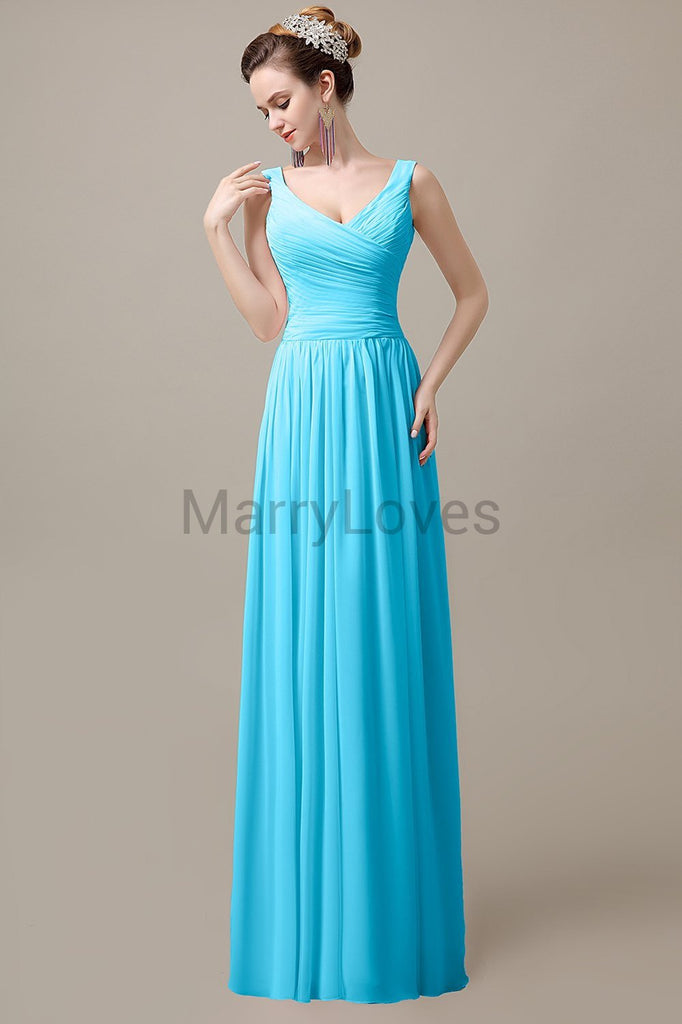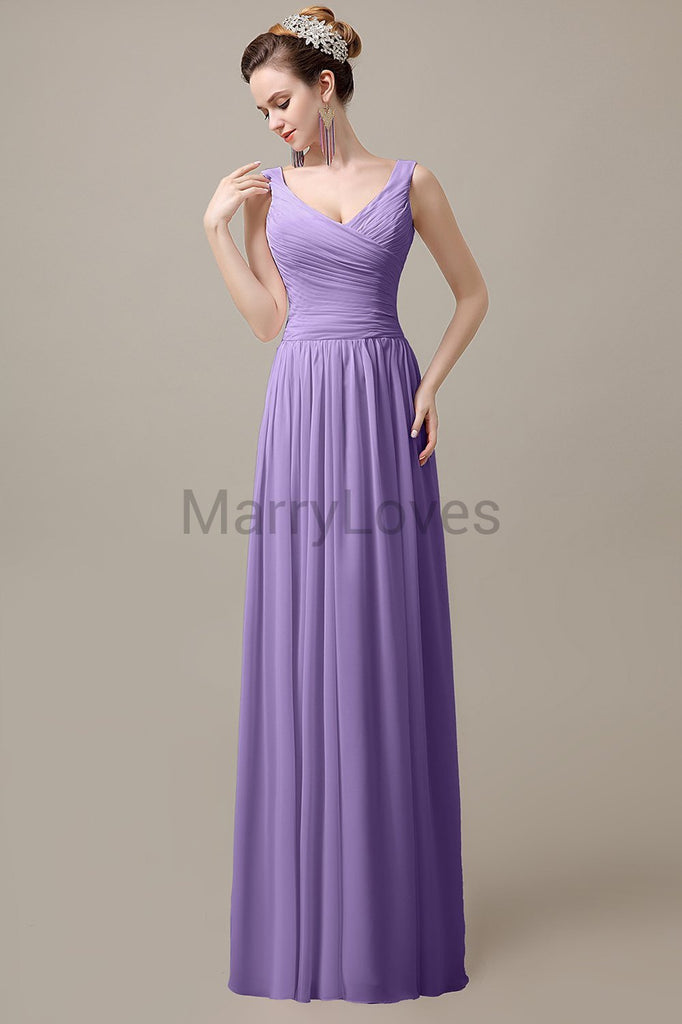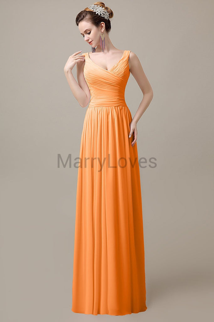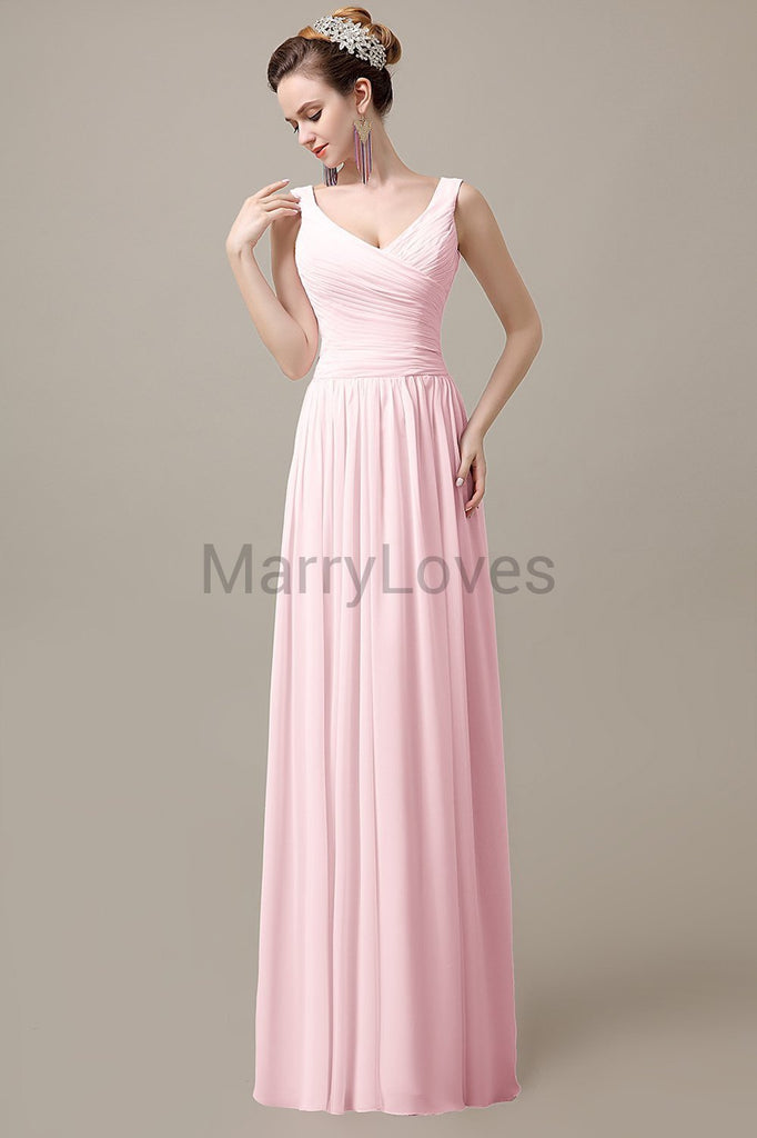 V-Neck Straps Pleats Bridesmaid Dresses V-Neck Straps Pleats Bridesmaid Dresses