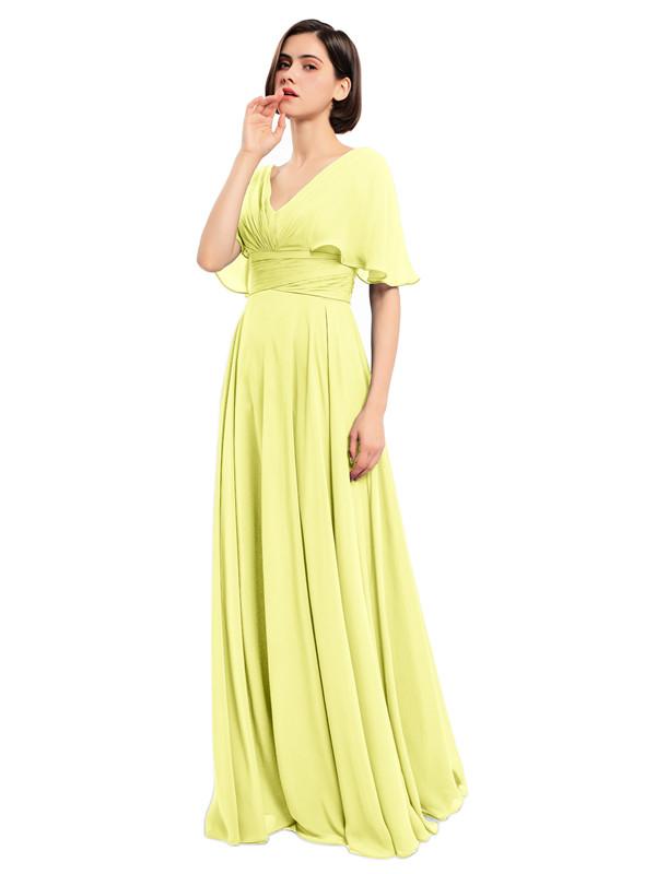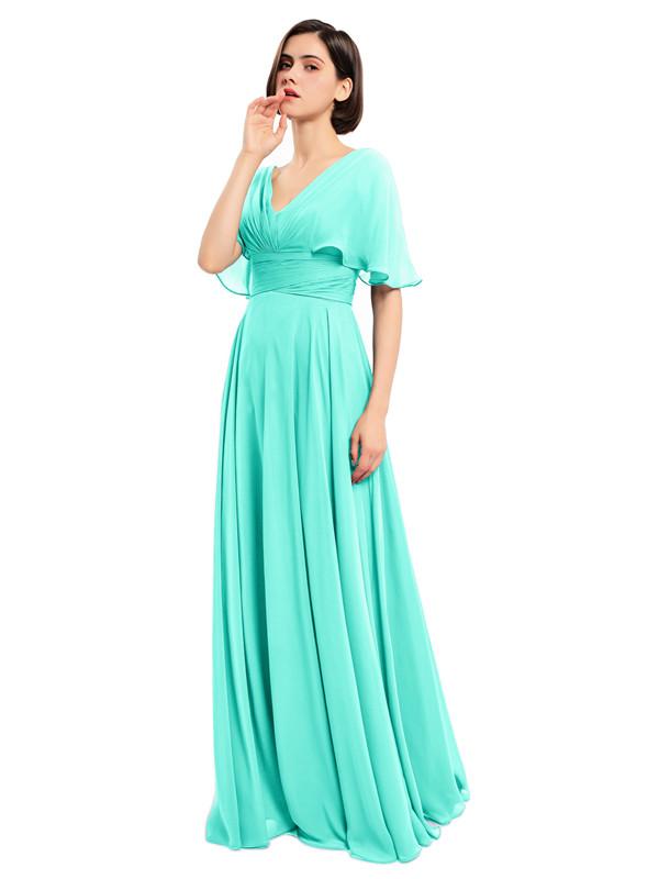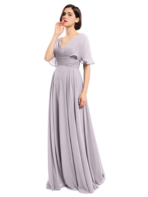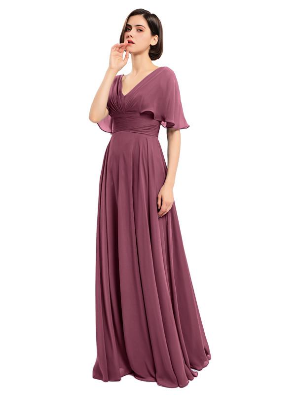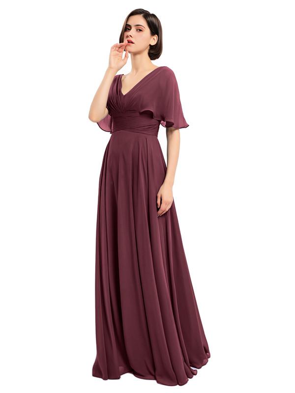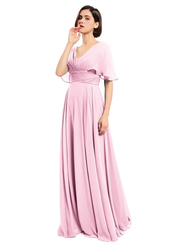 V-neck Short Sleeves Chiffon Bridesmaid Dresses