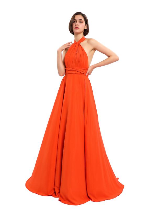 - This is a floor-length satin?dress. The halter design brings this dress a sense of vintage feeling.