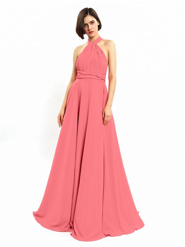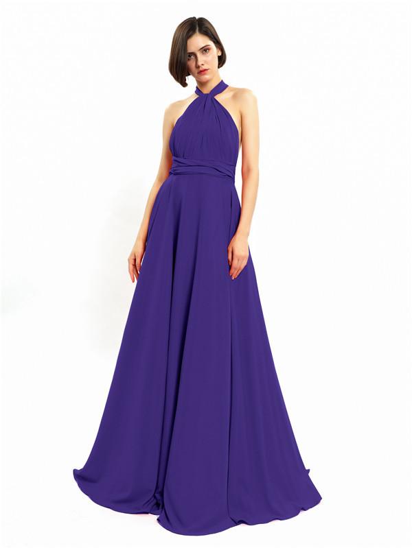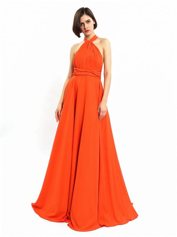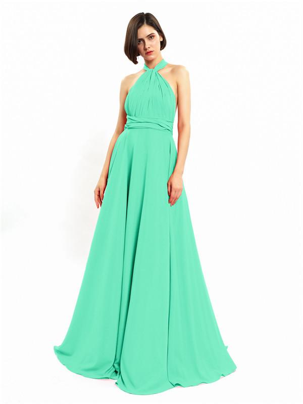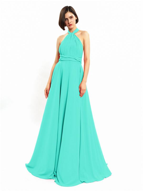 Halter Sleeveless Sexy A-line Long Prom Dresses