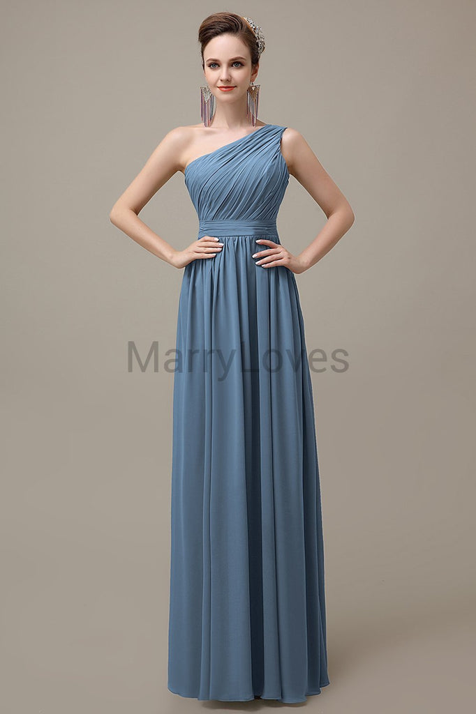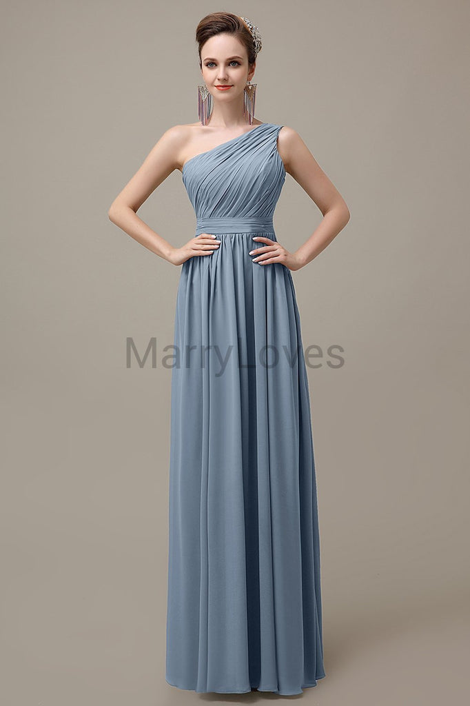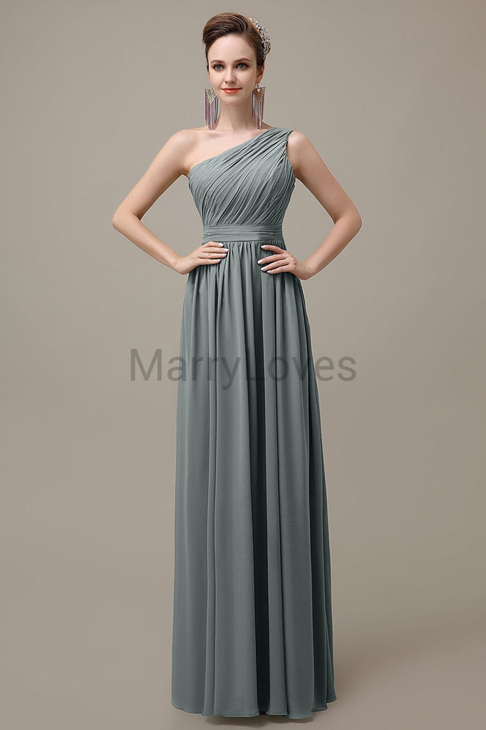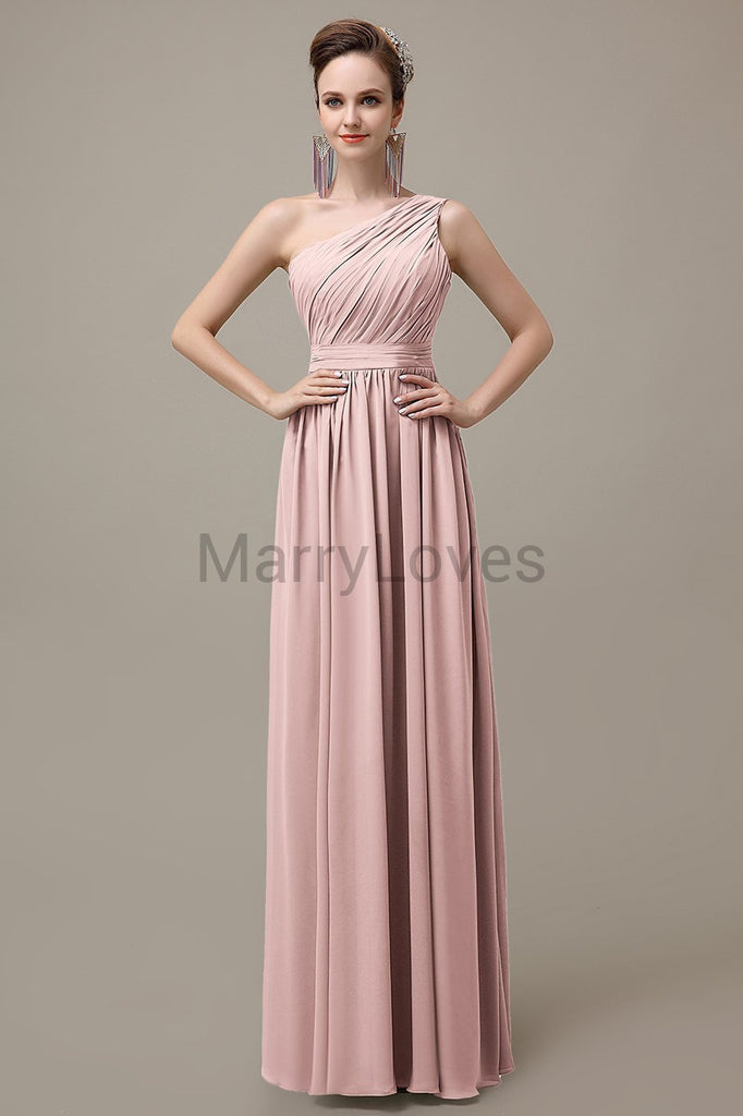 One Shoulder Chiffon Floor Length Bridesmaid Dresses