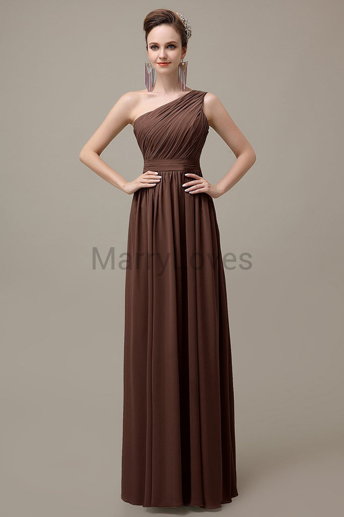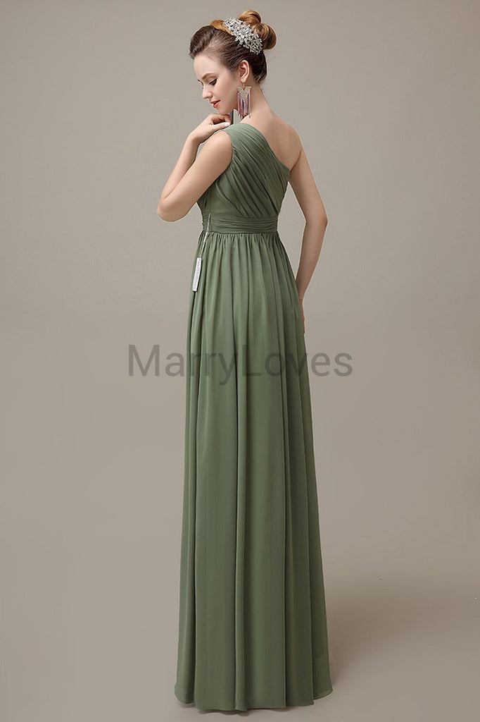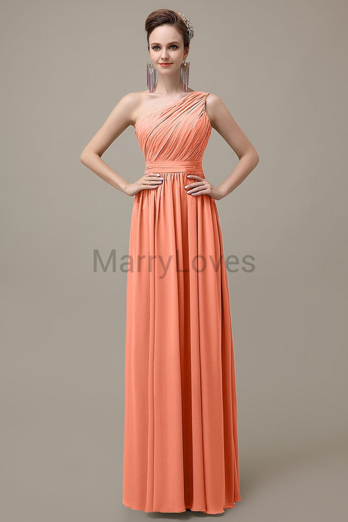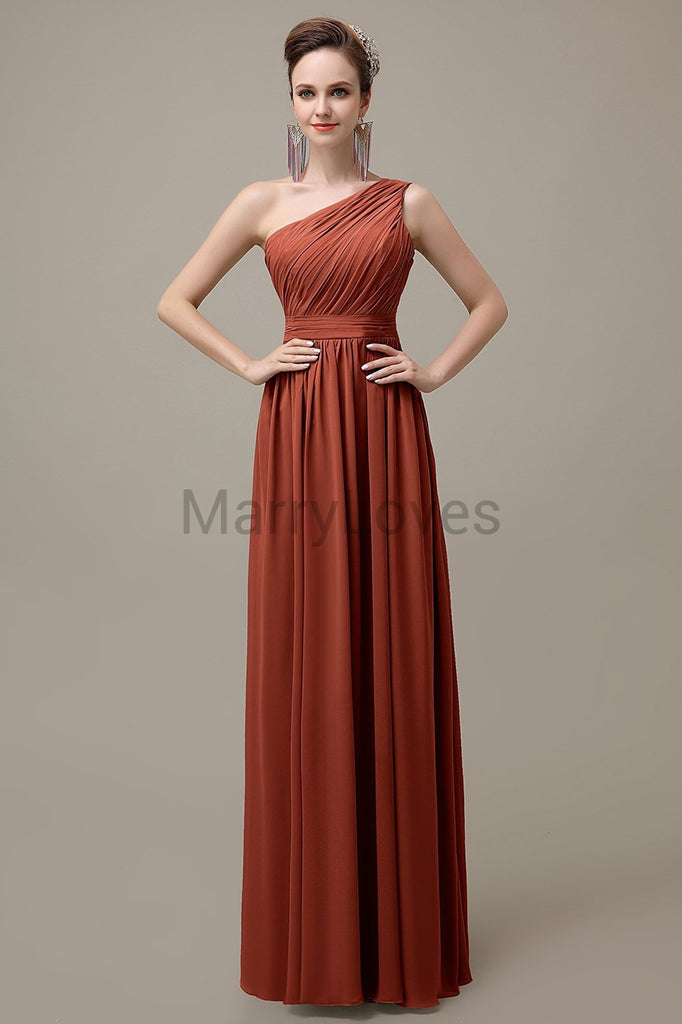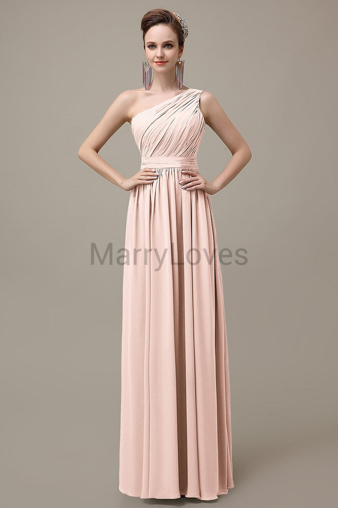 One Shoulder Chiffon Floor Length Bridesmaid Dresses