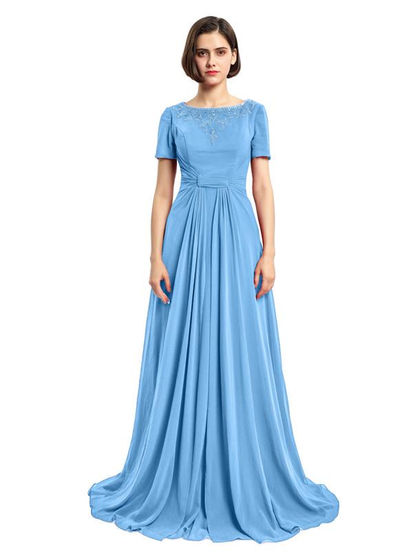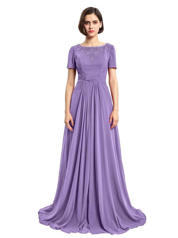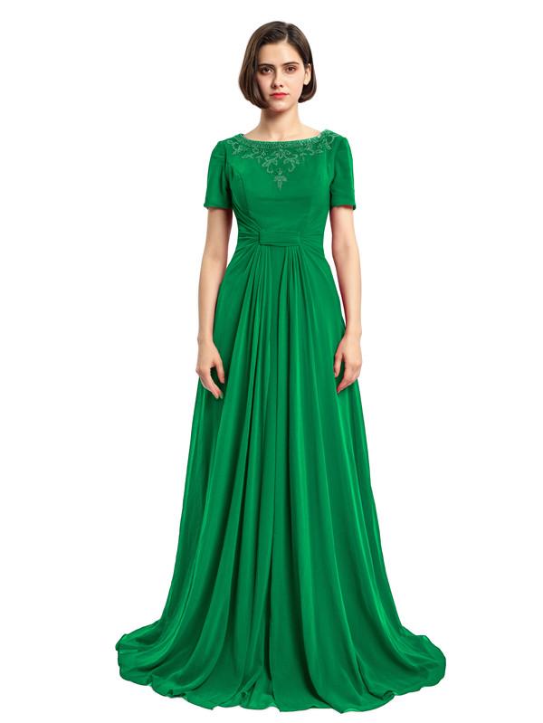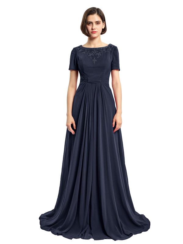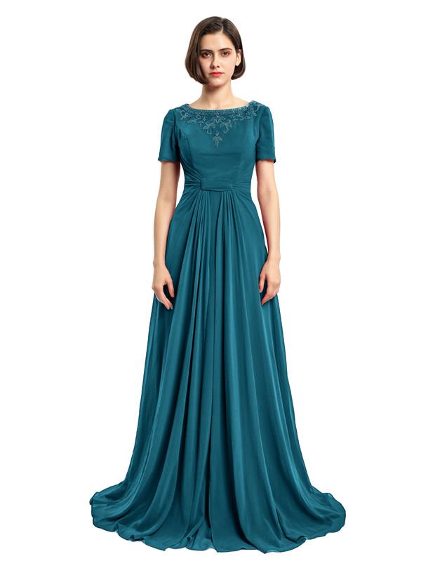 A-line Round Neck Short Sleeves Prom Dresses A-line Round Neck Short Sleeves Prom Dresses