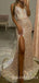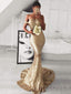 Mermaid Gold Sequin Spaghetti Straps Long Evening Prom Dresses, Cheap Custom Prom Dresses, MR7829