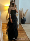 Floor-length Black Tulle A-line Long Evening Prom Dresses, MR9766 Floor-length Black Tulle A-line Long Evening Prom Dresses, MR9766
