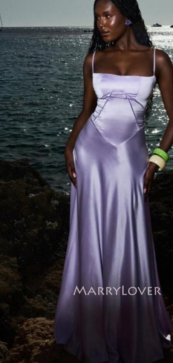 Gorgelos Purple Satin Spaghetti Straps Long Evening Prom Dresses, MR9553 Gorgelos Purple Satin Spaghetti Straps Long Evening Prom Dresses, MR9553
