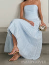 Morden Blue Tulle Simple Strapless Long Evening Prom Dresses, MR9745