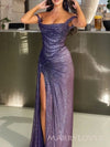 Purple Sequins Off Shoulder Mermaid Long Evening Prom Dresses, MR9454
