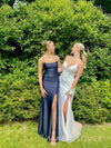 Simple Spaghetti Straps Navy Blue Long Evening Prom Dresses, MR9602