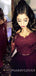 Burgundy Satin Lace Long Sleeves Applique Long High-low Evening Prom Dresses, MR7764