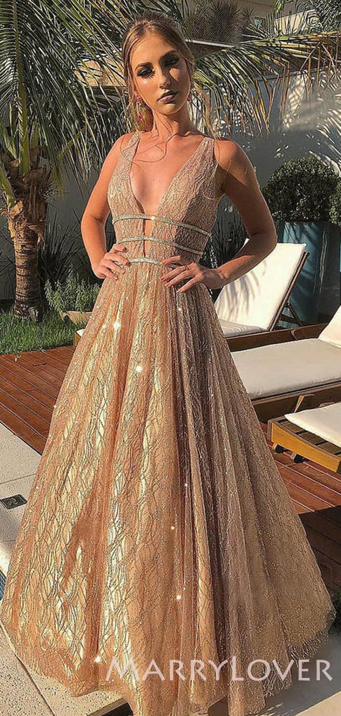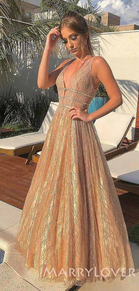Deep V-neck Gold Sequin A-line Long Sparkly Evening Prom Dresses, Cheap Custom Prom Dresses, MR7931 Deep V-neck Gold Sequin A-line Long Sparkly Evening Prom Dresses, Cheap Custom Prom Dresses, MR7931
