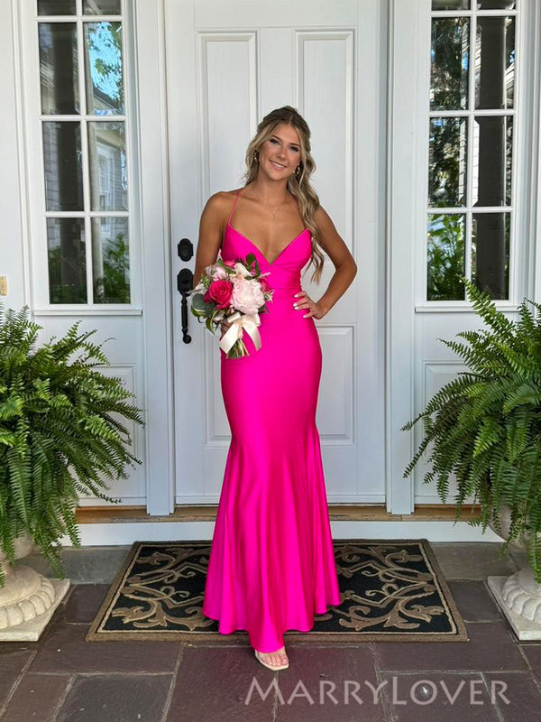 Elegant Backless Pink Mermaid V-neck Long Evening Prom Dresses, MR0148 Elegant Backless Pink Mermaid V-neck Long Evening Prom Dresses, MR0148