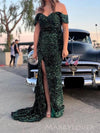 Elegant Green Sequins Mermaid Long Evening Prom Dresses, Off Shoulder Prom Dress, MR0071