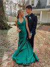 Formal Mermaid Green Satin Long Evening Prom Dresses, V-neck Prom Dress, MR0110