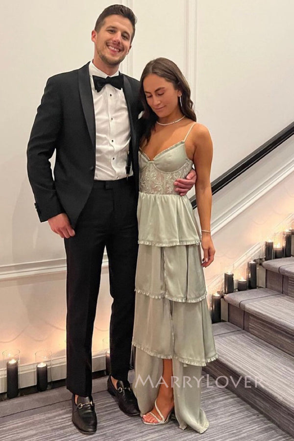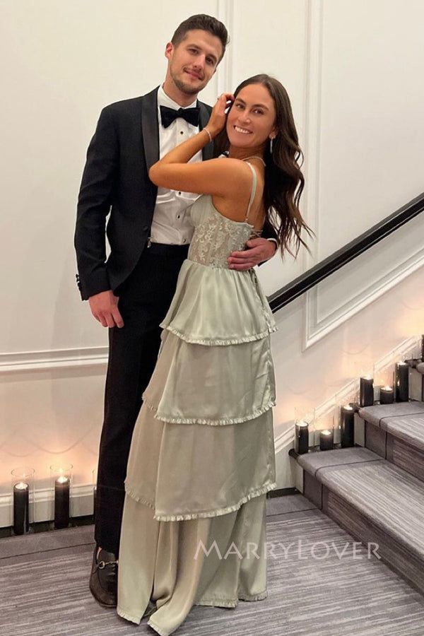 Gorgeous Spaghetti Straps Satin Lace Long Evening Prom Dresses, MR0043