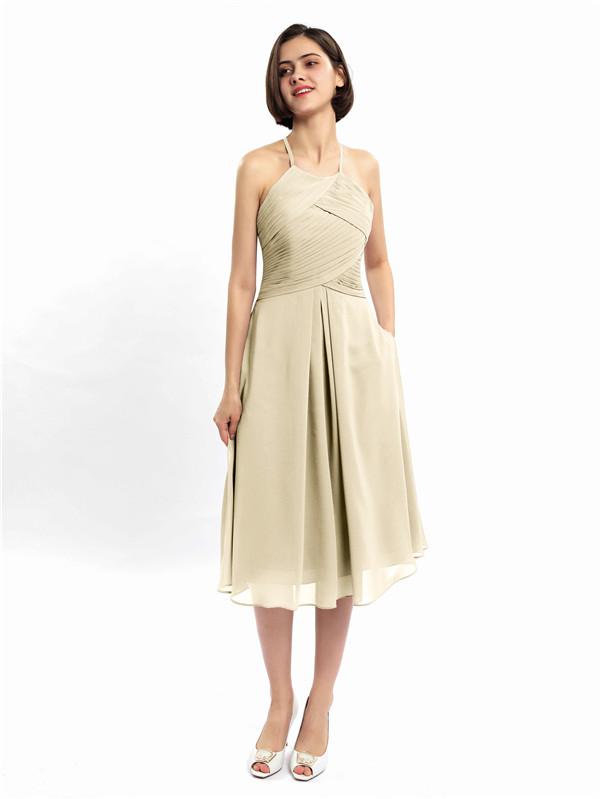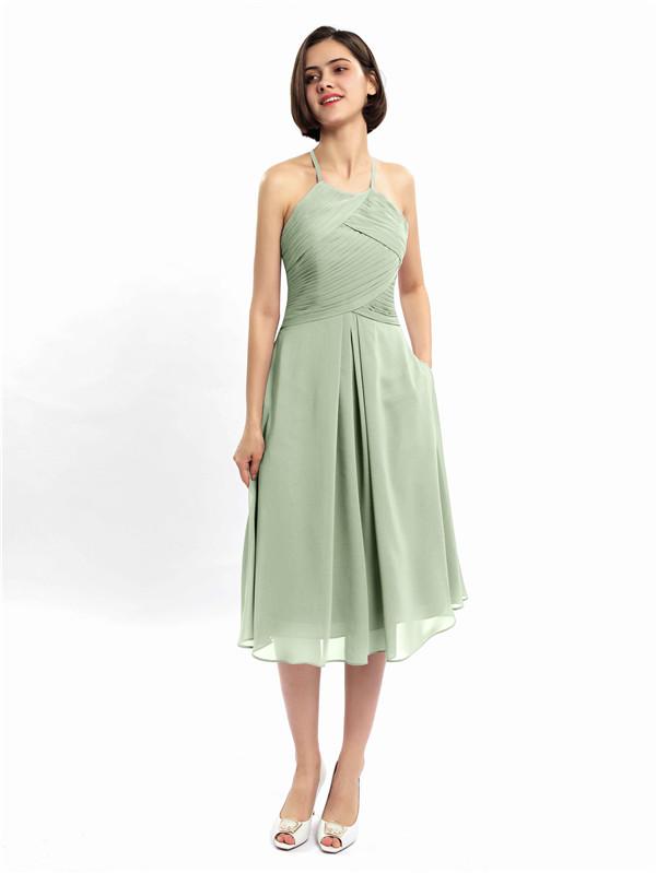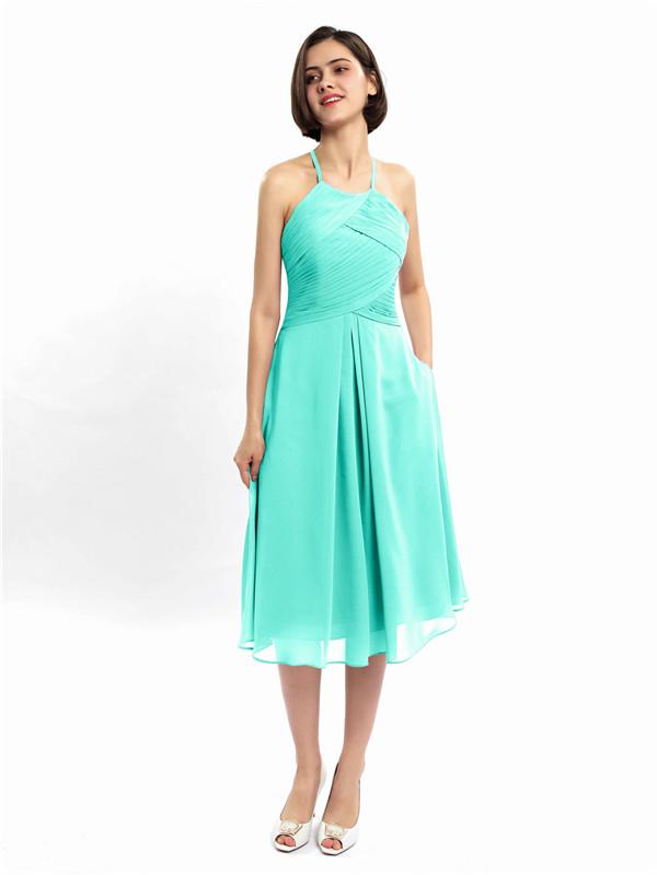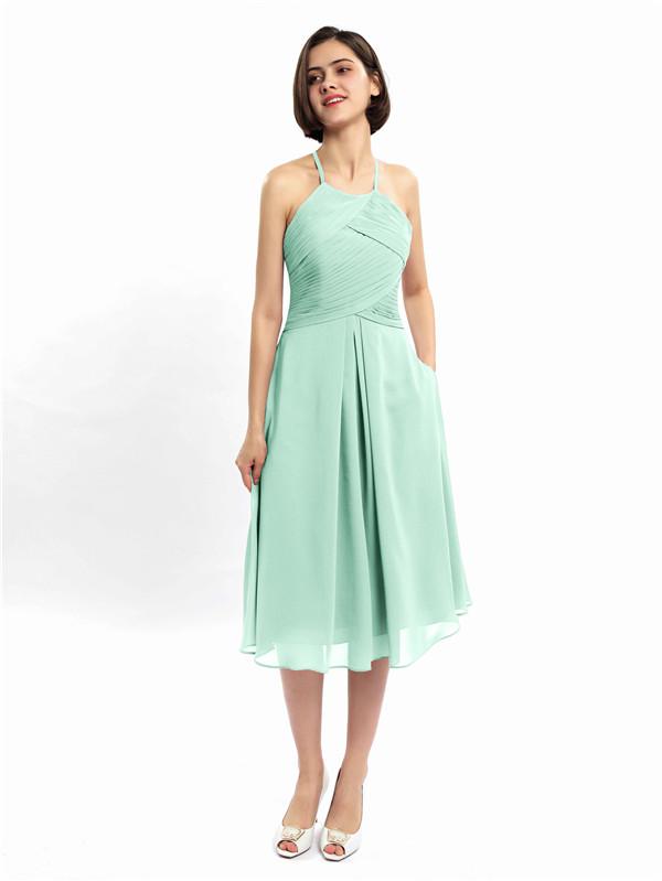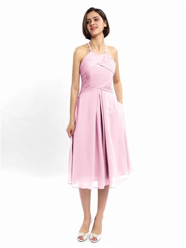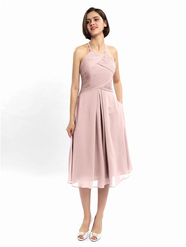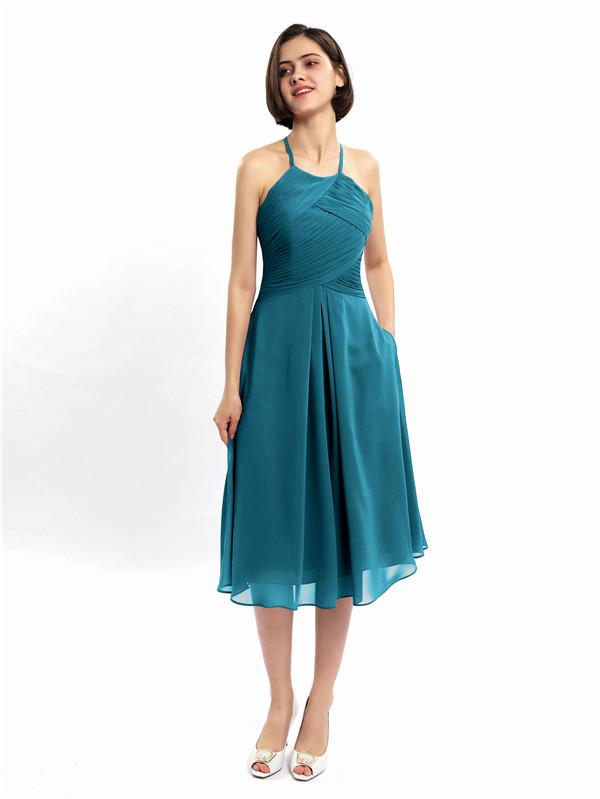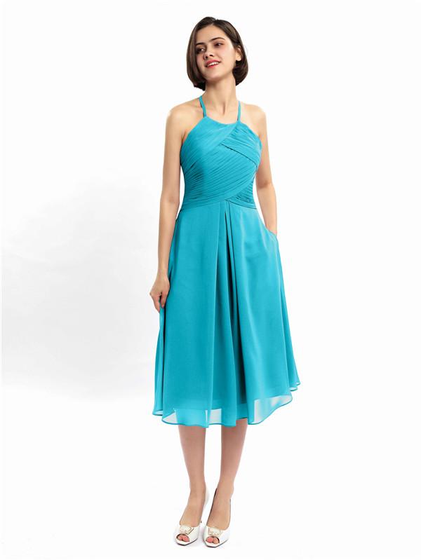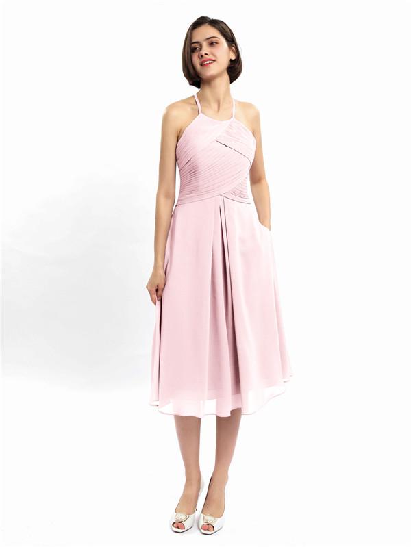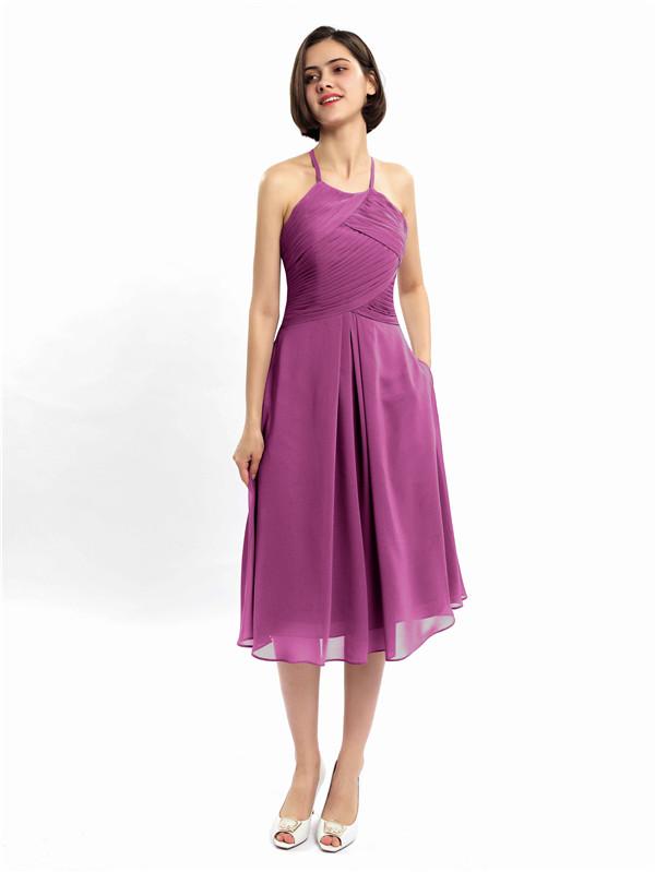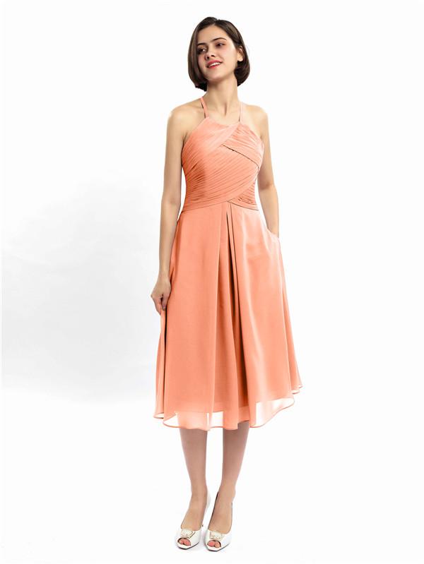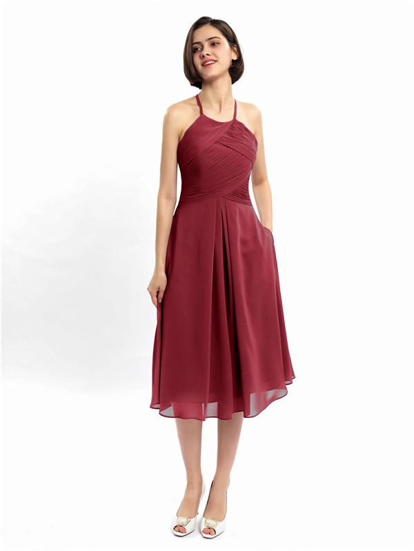 Halter Sleeveless Pleats Bridesmaid Dresses Halter Sleeveless Pleats Bridesmaid Dresses