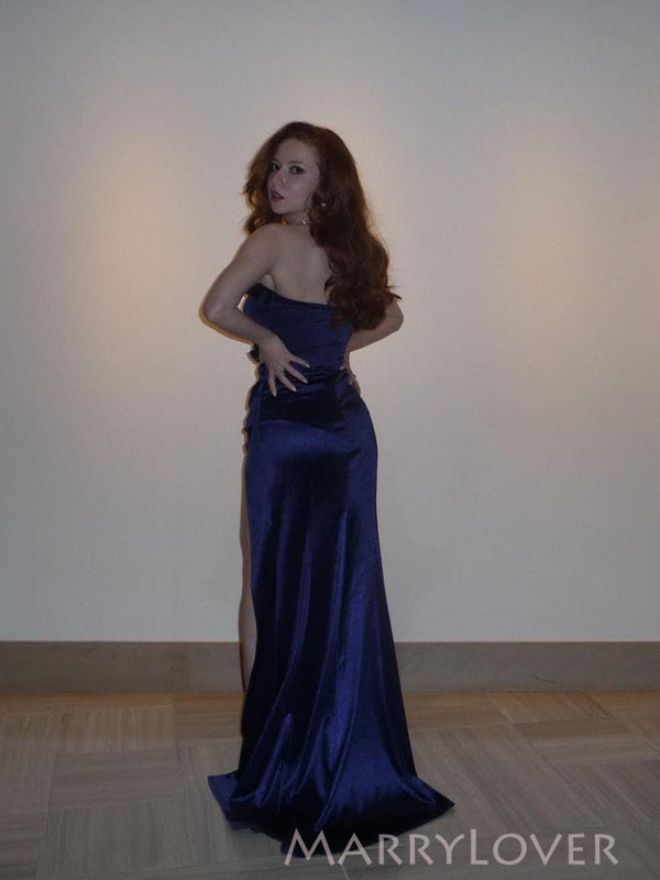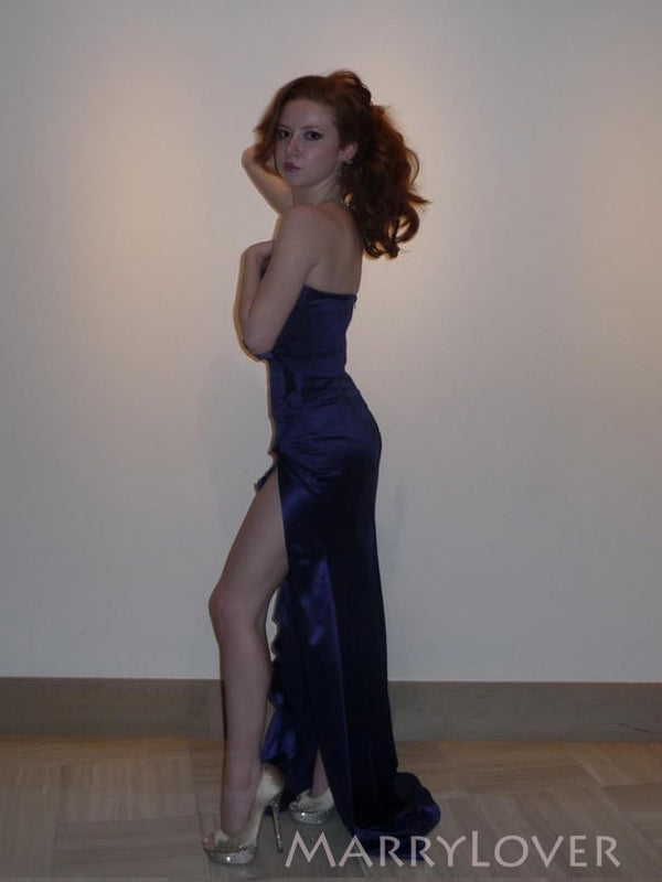 Morden Navy Blue Satin High Slit Long Evening Prom Dresses,Strapless Prom Dress, MR9246 Morden Navy Blue Satin High Slit Long Evening Prom Dresses,Strapless Prom Dress, MR9246