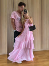 Morden Pink Chiffon Long Evening Prom Dresses, A-line Backless Prom Dress, MR0125
