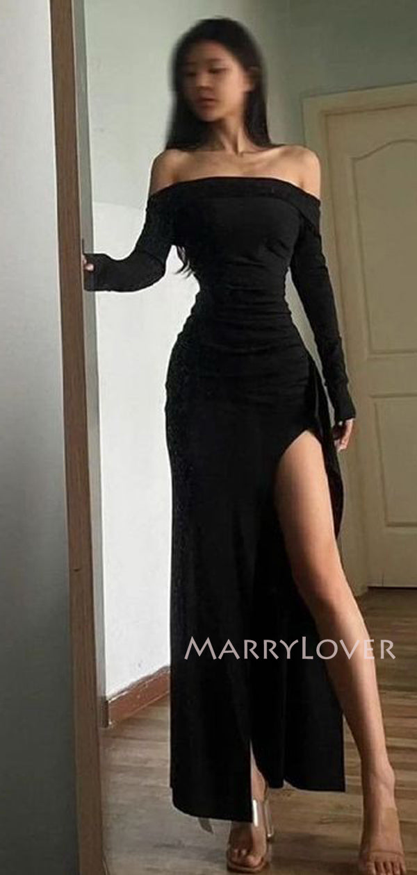 Off Shoulder Long Sleeves Mermaid Side Slit Long Evening Prom Dresses, MR9796 Off Shoulder Long Sleeves Mermaid Side Slit Long Evening Prom Dresses, MR9796
