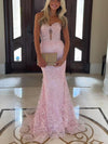 Sweetheart Pink Lace Appliques Long Evening Prom Dresses, Mermaid Prom Dress, MR0105