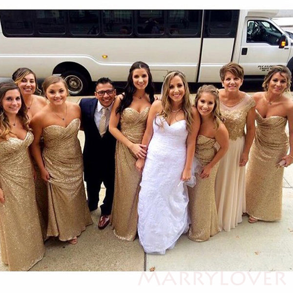 Sweetherat Gold Sequins Mermaid Strapless Cheap Long Custom Bridesmaid Dresses , MRB0084 Sweetherat Gold Sequins Mermaid Strapless Cheap Long Custom Bridesmaid Dresses , MRB0084