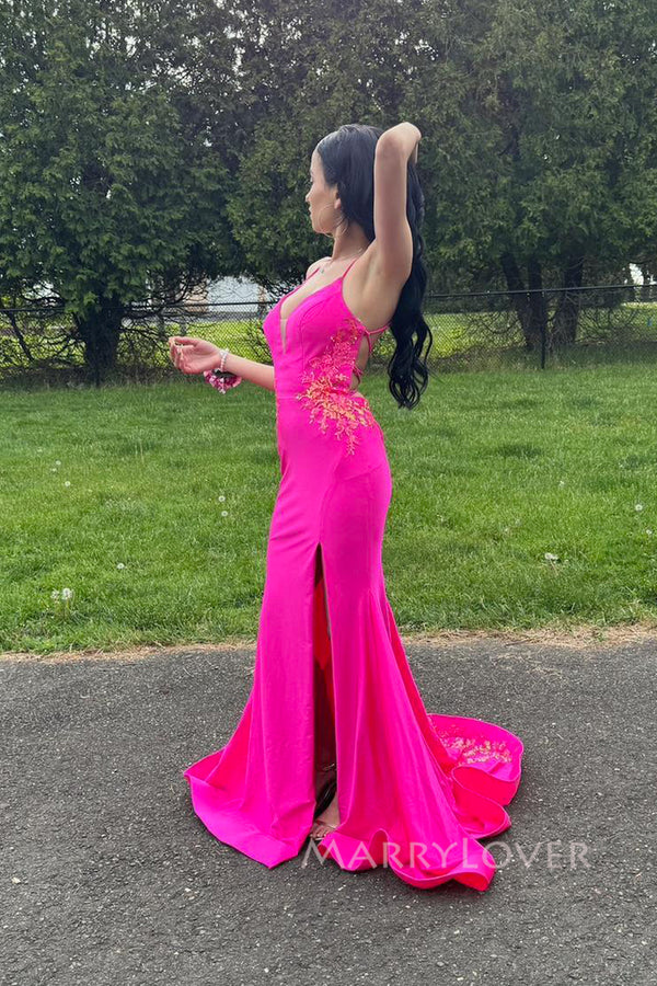 Unique Pink Mermaid Appliques Long Evening Prom Dresses, MR0172 Unique Pink Mermaid Appliques Long Evening Prom Dresses, MR0172